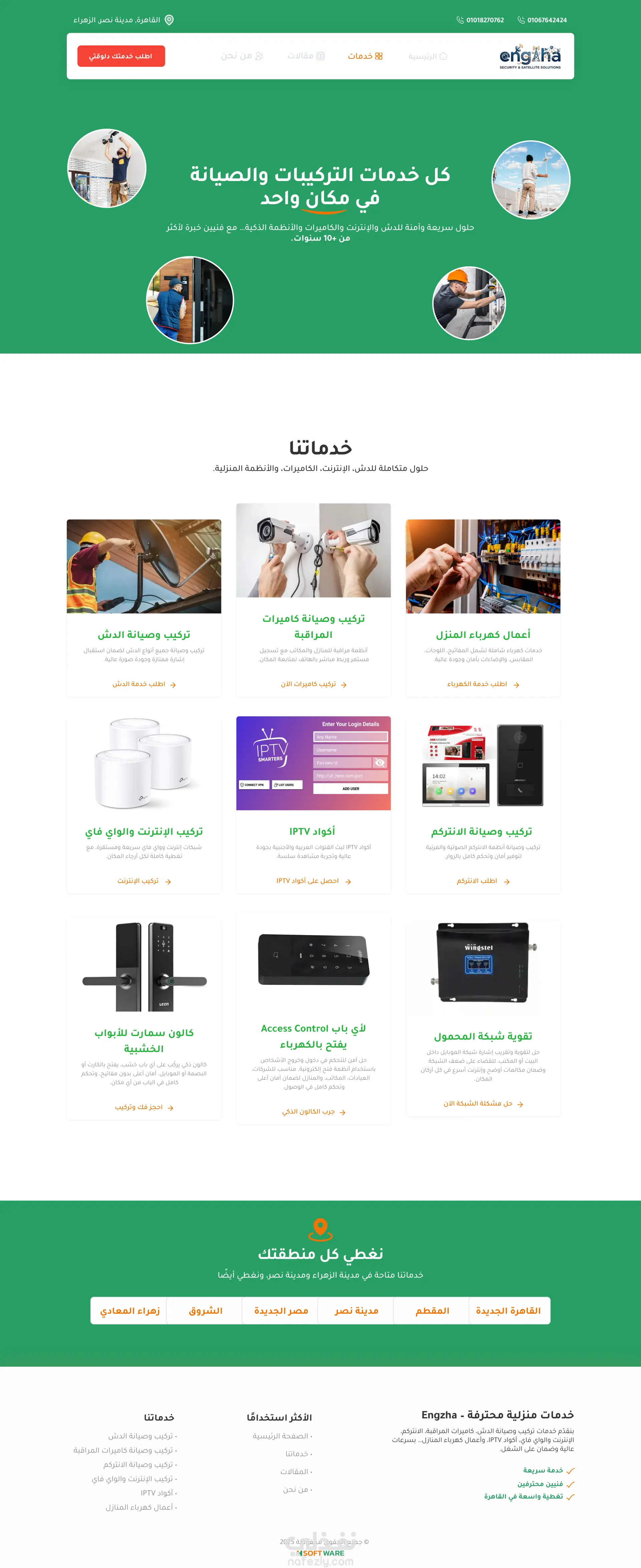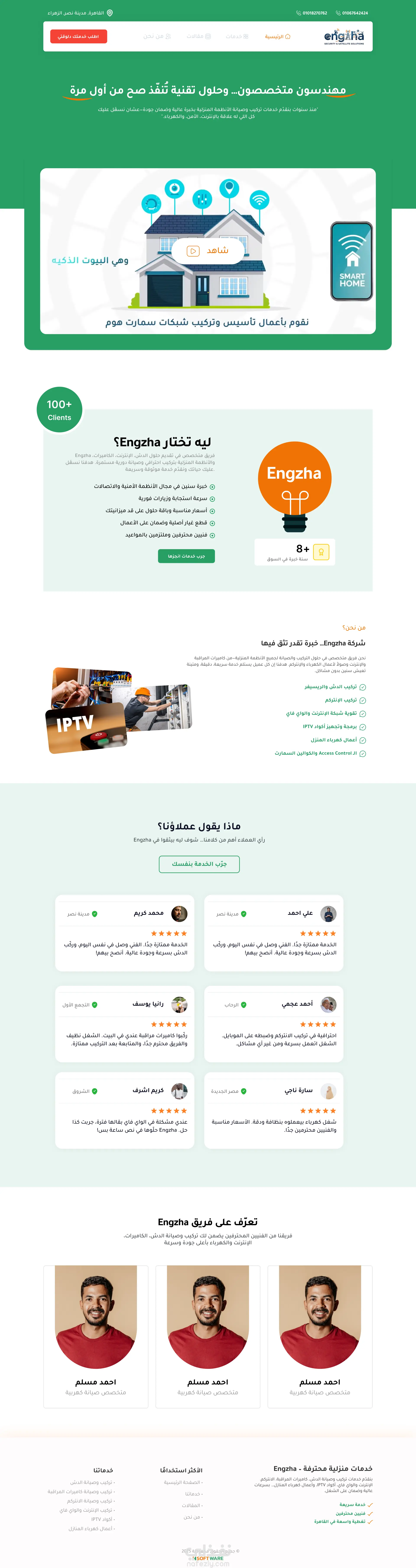إحنا فريق Four Software اشتغلنا على تنفيذ موقع شركة Engzha لخدمات التركيبات والصيانة.