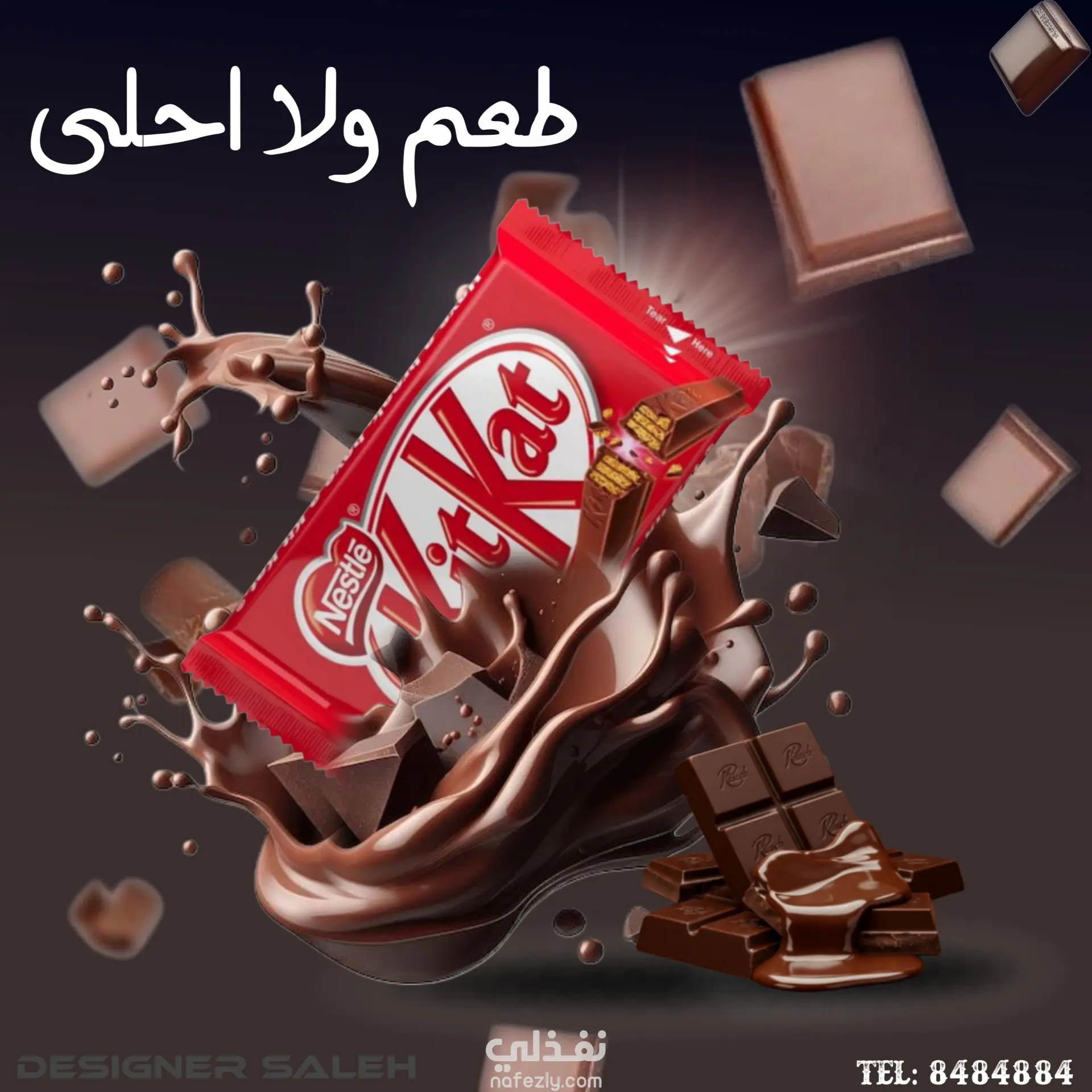 إعلان شوكولاتة 🍫kit kat مع الحفاظ على التناسق البصري والخط المناسب للاعلان وشكرا🌿