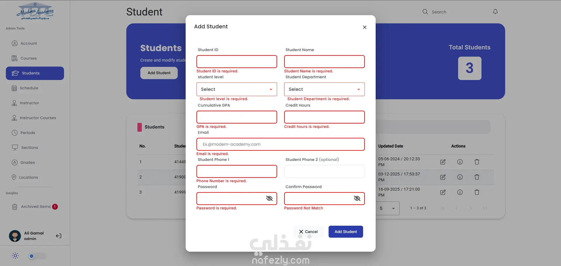 تطبيق ويب يهدف إلى إدارة وتقييم جودة العملية التعليمية داخل المؤسسات الأكاديمية، من خلال تنظيم البيانات، متابعة المعايير، وتسهيل عمليات التقييم والتقارير. تم تنفيذ المشروع باستخدام تقنيات الويب الحديثة مع التركيز على الأداء، سهولة الاستخدام، وتنظيم الكود. التقنيات المستخدمة: HTML – SCSS – TypeScript– Angular Grid System Bootstrap PHP – laravel MySQL