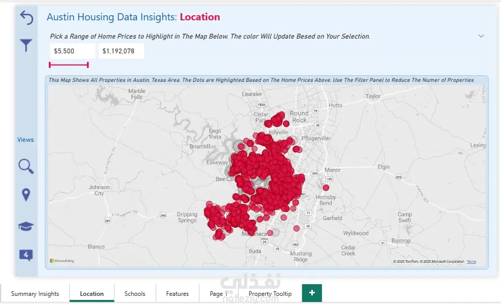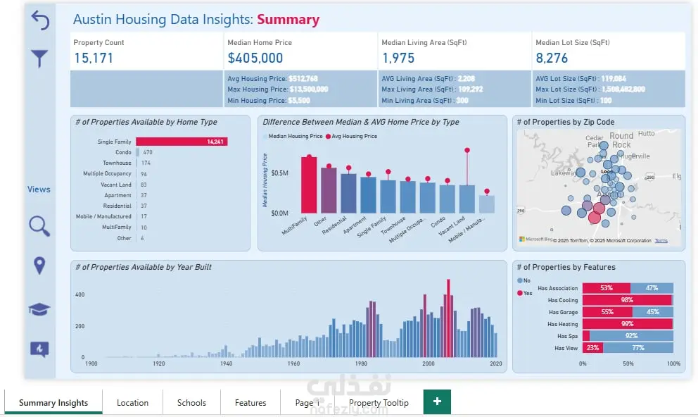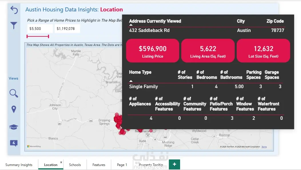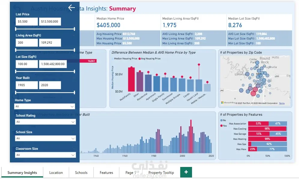 مشروع تحليل بيانات المنازل المعروضه للبيع في مدينة Austin – Texas يهدف إلى استكشاف وفهم سوق العقارات في المدينة مع التركيز على العوامل المؤثرة في أسعار المنازل واتخاذ قرارات مبنية على البيانات. أهداف المشروع: - تحليل أسعار المنازل وتوزيعها الجغرافي. - دراسة تأثير خصائص المنازل والمدارس على سعر العقار. - توفير Dashboard تفاعلي يساعد المستخدمين على استكشاف البيانات بسهولة.