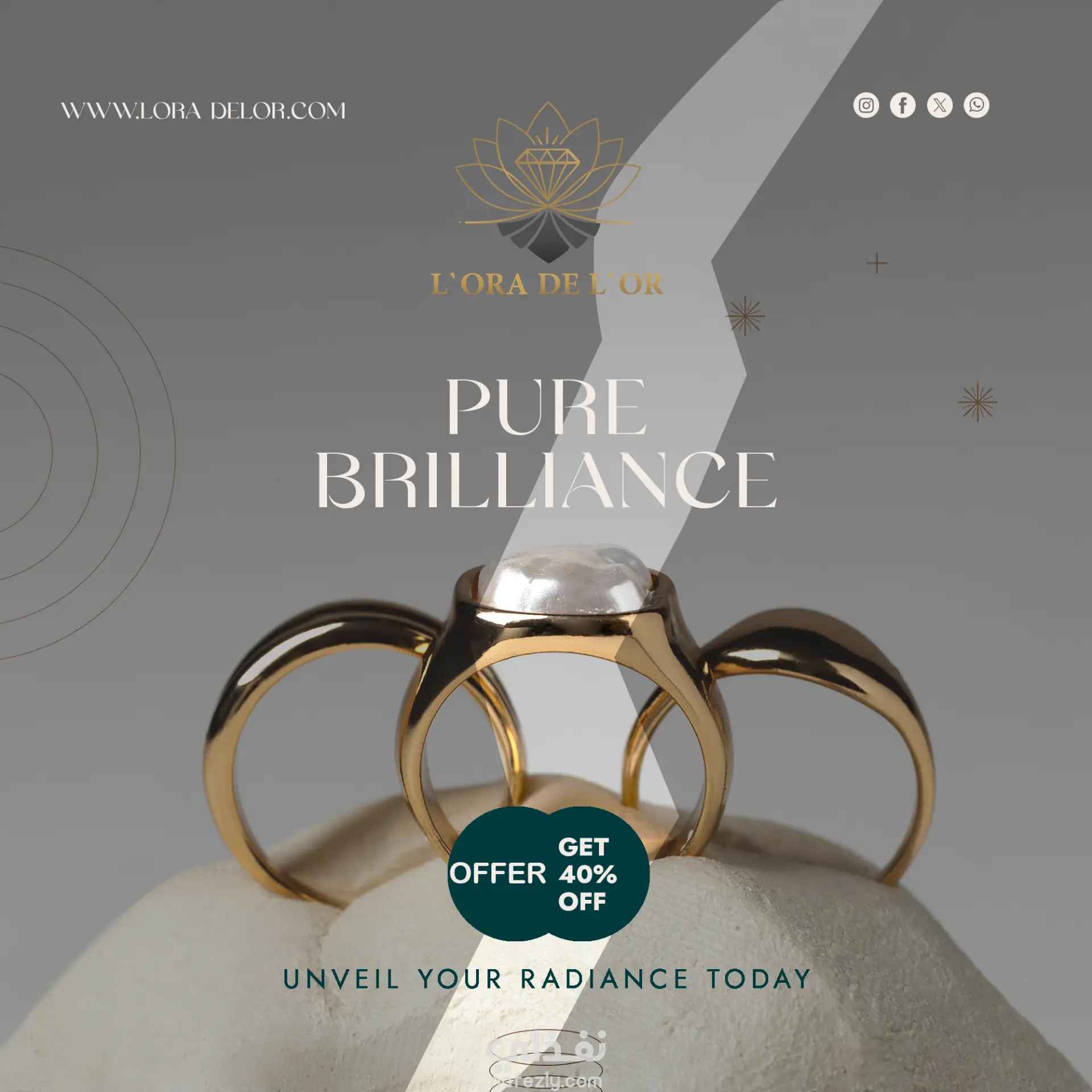 الهدف كان بناء هوية بصرية كاملة لعلامة تجارية متخصصة في المجوهرات الراقية. الاسم L'OREA DE L'OR يعكس الفخامة والتميز، لذا كان التحدي هو دمج العصرية مع الكلاسيكية في تصميم واحد يعبر عن قيمة الذهب والأحجار الكريمة.