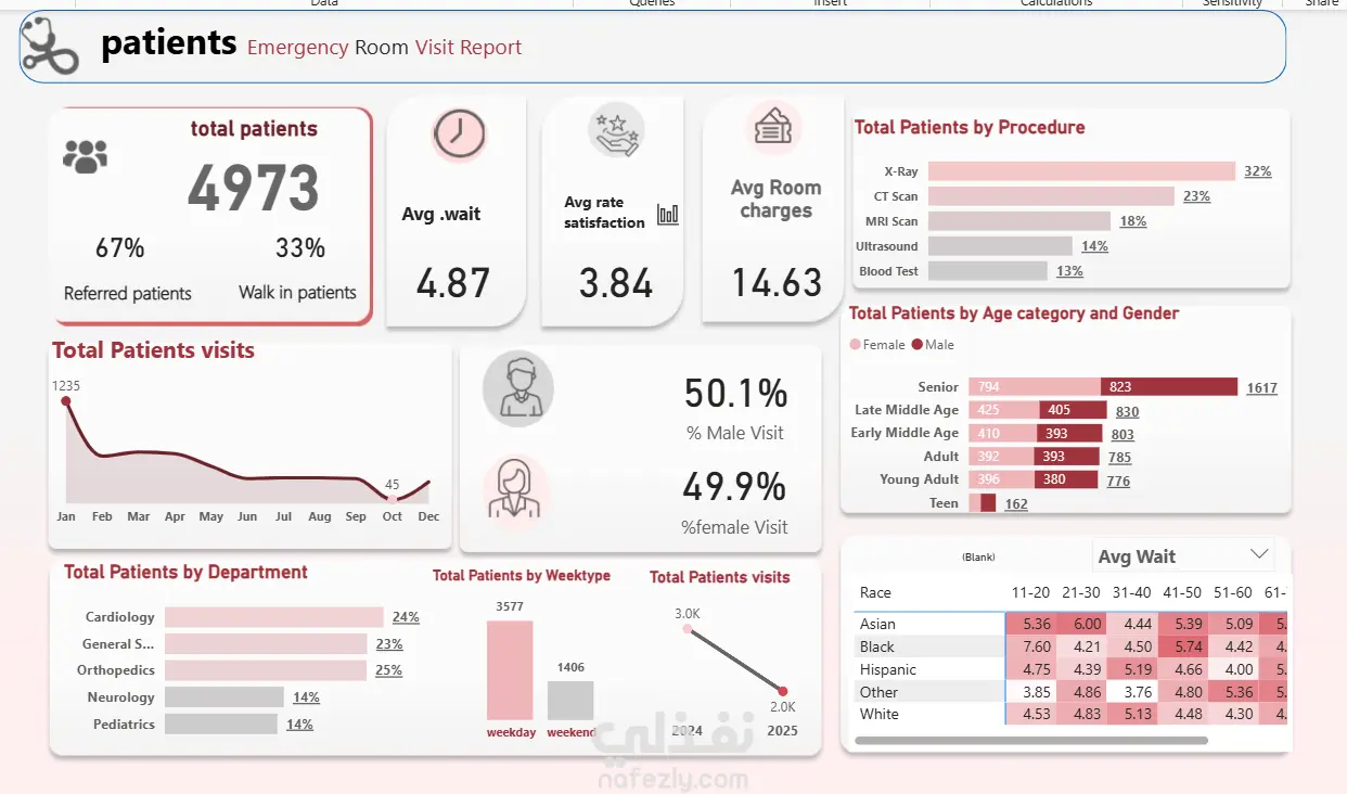 في مشروعي الأخير، قمت بتحليل بيانات "غرفة الطوارئ" (Emergency Room) ليس فقط من أجل عرض الأرقام، بل لمساعدة الإدارة في فهم "لماذا ينتظر المرضى؟" وكيف يمكن تحسين كفاءة المستشفى.