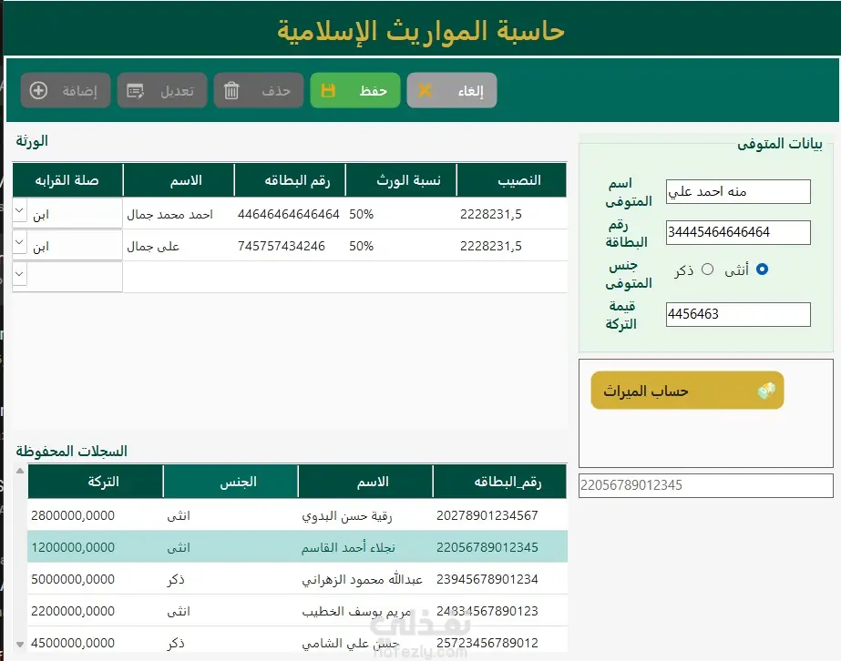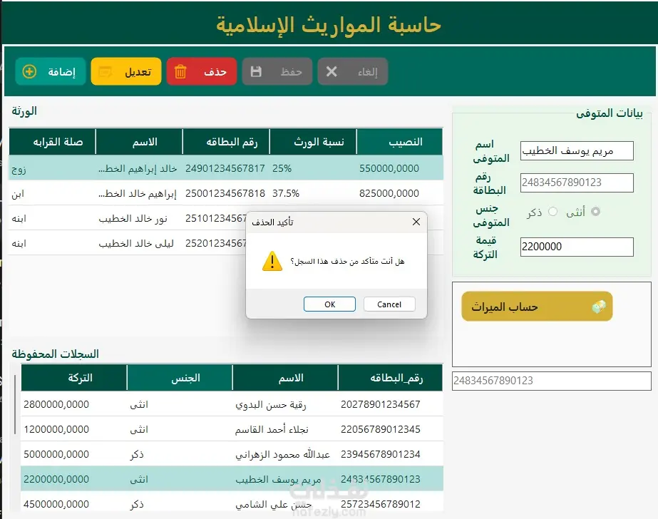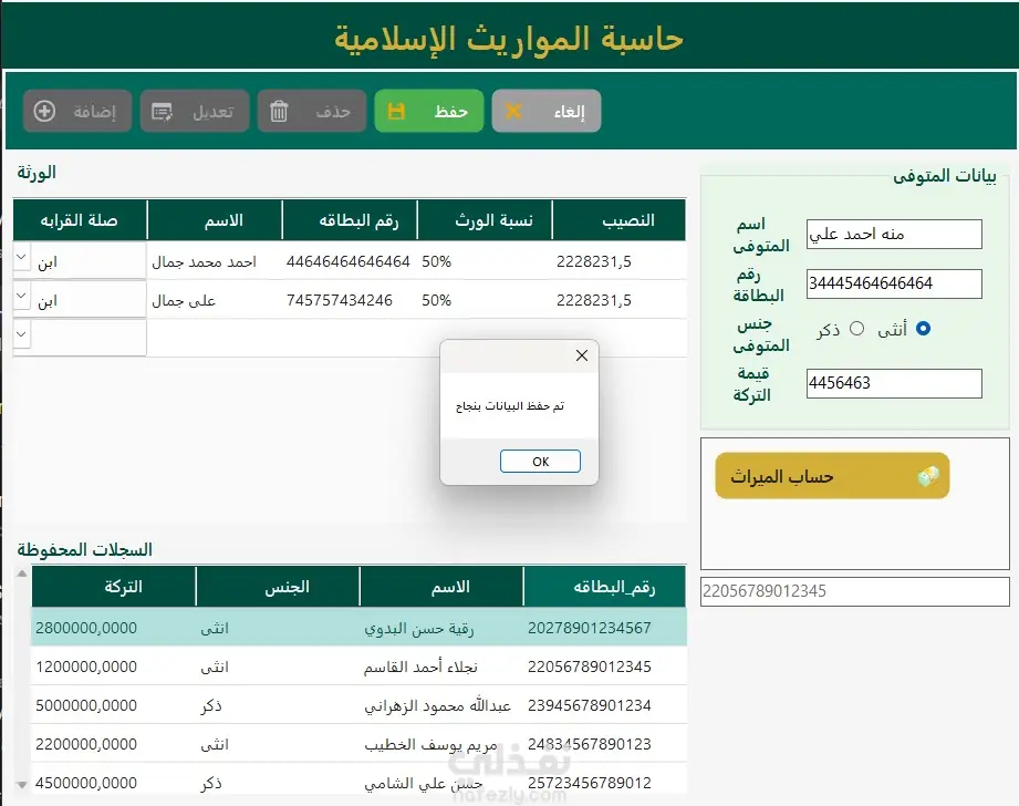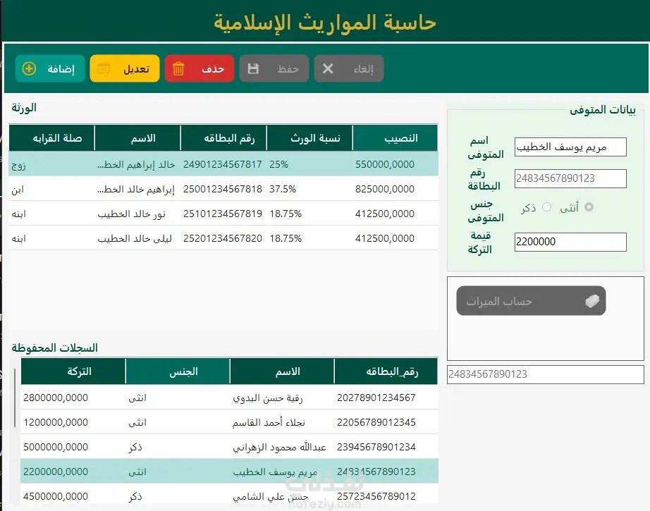 برنامج حساب المواريث الشرعية - تطبيق سطح مكتب احترافي