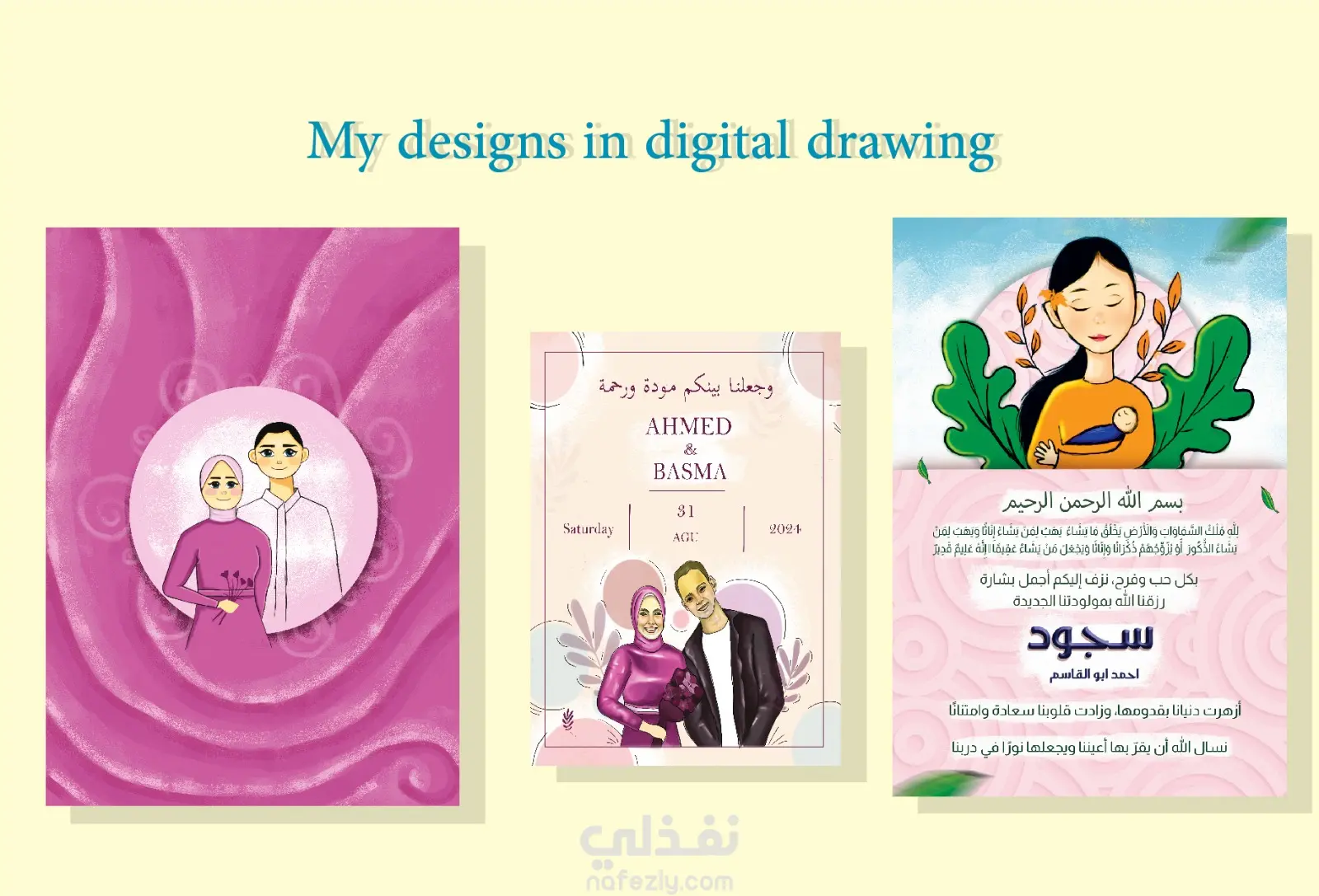 لذلك فأنا يمكنني اضافه بعض لمساتي الفنيه بواسطه الرسم الرقمي الي التصميمات المطلوبه