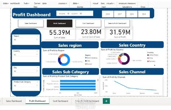 وم بتحليل البيانات المالية وتصميم لوحات تحكم متقدمة باستخدام Power BI لقياس المبيعات والأرباح، ومتابعة النمو، وتحليل الأداء حسب المنطقة والمنتج والقنوات. أقدم رؤى مالية دقيقة تساعد الشركات في اتخاذ قرارات استراتيجية مبنية على البيانات، وتحديد فرص النمو، ومعالجة الانخفاضات، وتعظيم الربحية." برز مهامي في المشروع: 1. تطوير لوحات تحكم تفاعلية باستخدام Power BI إنشاء Dashboards احترافية تشمل: لوحة المبيعات Sales Dashboard لوحة الأرباح Profit Dashboard لوحة التكاليف Cost Dashboard لوحة موحدة Sales & Profit بناء Measures باستخدام DAX لحساب: إجمالي المبيعات إجمالي الأرباح الربحية Margins نمو المبيعات YoY الأداء حسب المنطقة والمنتج والقناة 2. تحليل مالي شامل للأداء تحليل إجمالي المبيعات والأرباح لكل سنة خلال الفترة 2016–2019. قياس معدلات النمو السنوية وتحديد السنوات ذات الأداء القوي والضعيف (مثل الانخفاض الكبير في 2019). تقييم الأداء حسب المنطقة الجغرافية: أمريكا الشمالية (الأقوى) آسيا أوروبا تحليل مستوى الربحية ومقارنة Profit Ratio بين المناطق. 3. تحليل عميق حسب عوامل مختلفة Region-Level Analysis: تحديد المنطقة الأكثر مساهمة في الإيرادات وأعلى هامش ربح. Country-Level Analysis: تحديد الدول التي قادت النمو وأخرى شهدت تراجعًا. Product Subcategory Analysis: دراسة أفضل وأسوأ الفئات نموًا ومبيعات. Channel Analysis: تقييم أداء كل قناة بيع (Store – Online – Reseller – Catalog). 4. استخلاص رؤى Insights قابلة للتنفيذ تحديد أسباب الانخفاض في 2019 (مثل ضعف العروض أو التغير في الطلب). وضع توصيات استراتيجية لزيادة المبيعات، مثل: تعزيز الاستثمار في أمريكا الشمالية توسيع الحصة في آسيا تطوير القنوات الرقمية في أوروبا تحسين استراتيجيات الأسعار والترويج 5. إعداد ملخص تنفيذي لصناع القرار عرض أهم المؤشرات المالية. تقديم توصيات عملية لزيادة الإيرادات وتحسين الربحية. دعم اتخاذ القرار باستخدام البيانات بشكل تفصيلي وواضح.