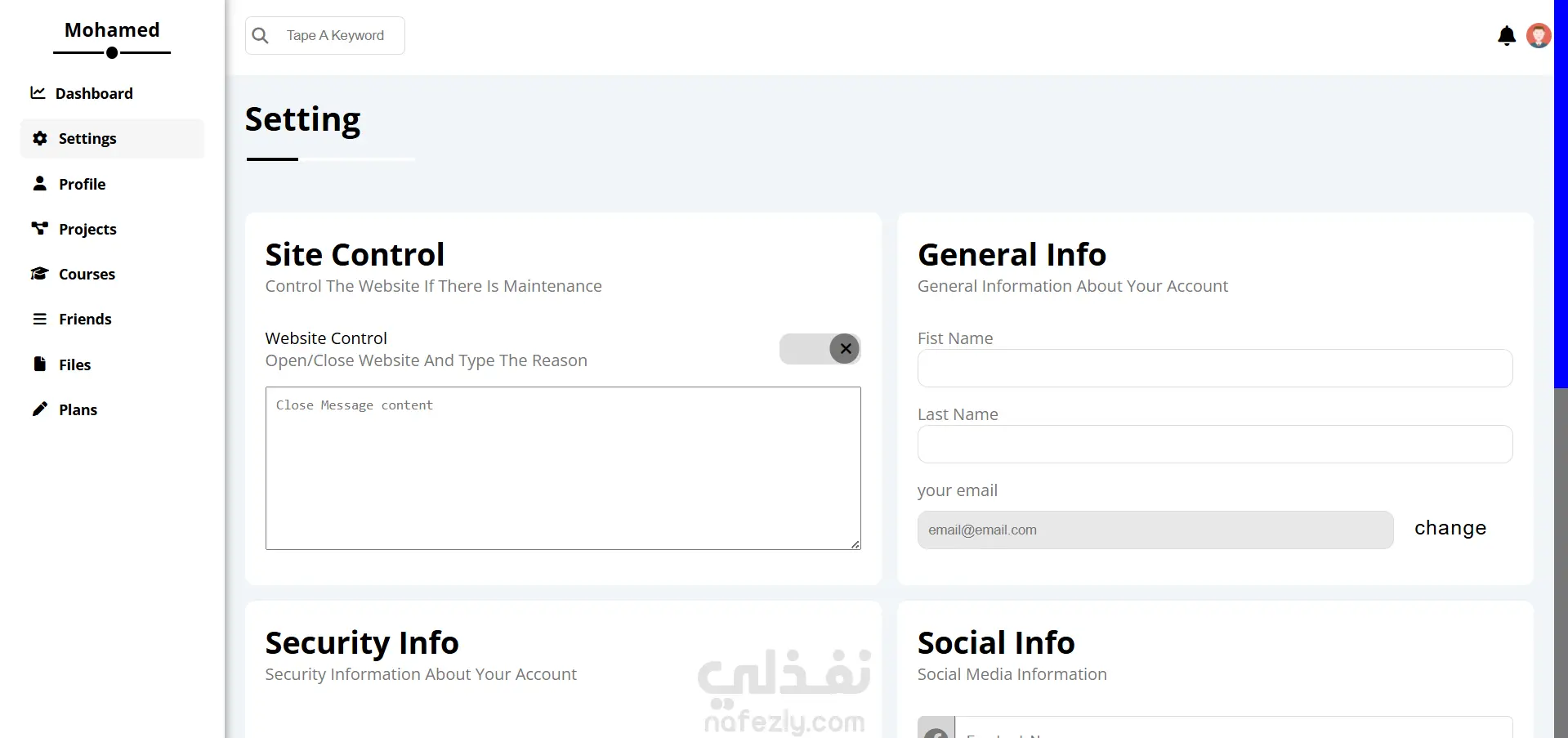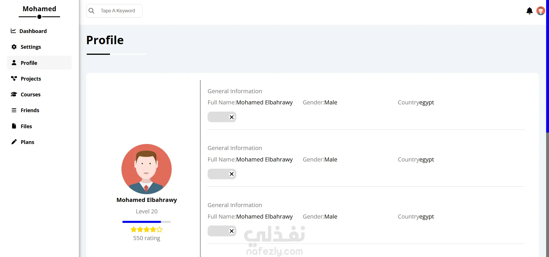 صفحات متعددة: تشمل (الرئيسية، الملفات، المشاريع، الكورسات، الأصدقاء، الإعدادات، والملف الشخصي). نظام إعدادات متطور: يشمل التحكم في الحساب، التنبيهات، وإدارة النسخ الاحتياطي (Backup Manager). واجهة مستخدم (UI) نظيفة: استخدام CSS Framework مخصص لضمان تناسق الألوان والعناصر في كل الصفحات. تجاوب كامل: تصميم مرن يتناسب مع كافة الشاشات والأجهزة. صفحات إضافية: تشمل صفحات تأكيد الإرسال واستعادة كلمة المرور.