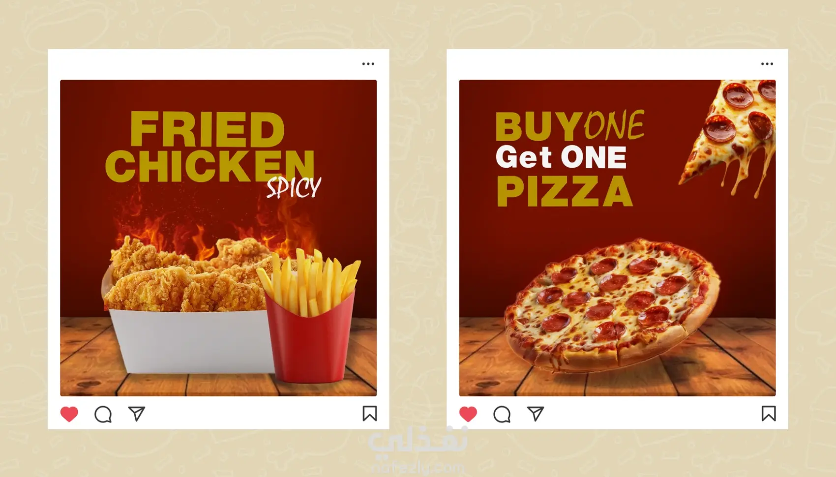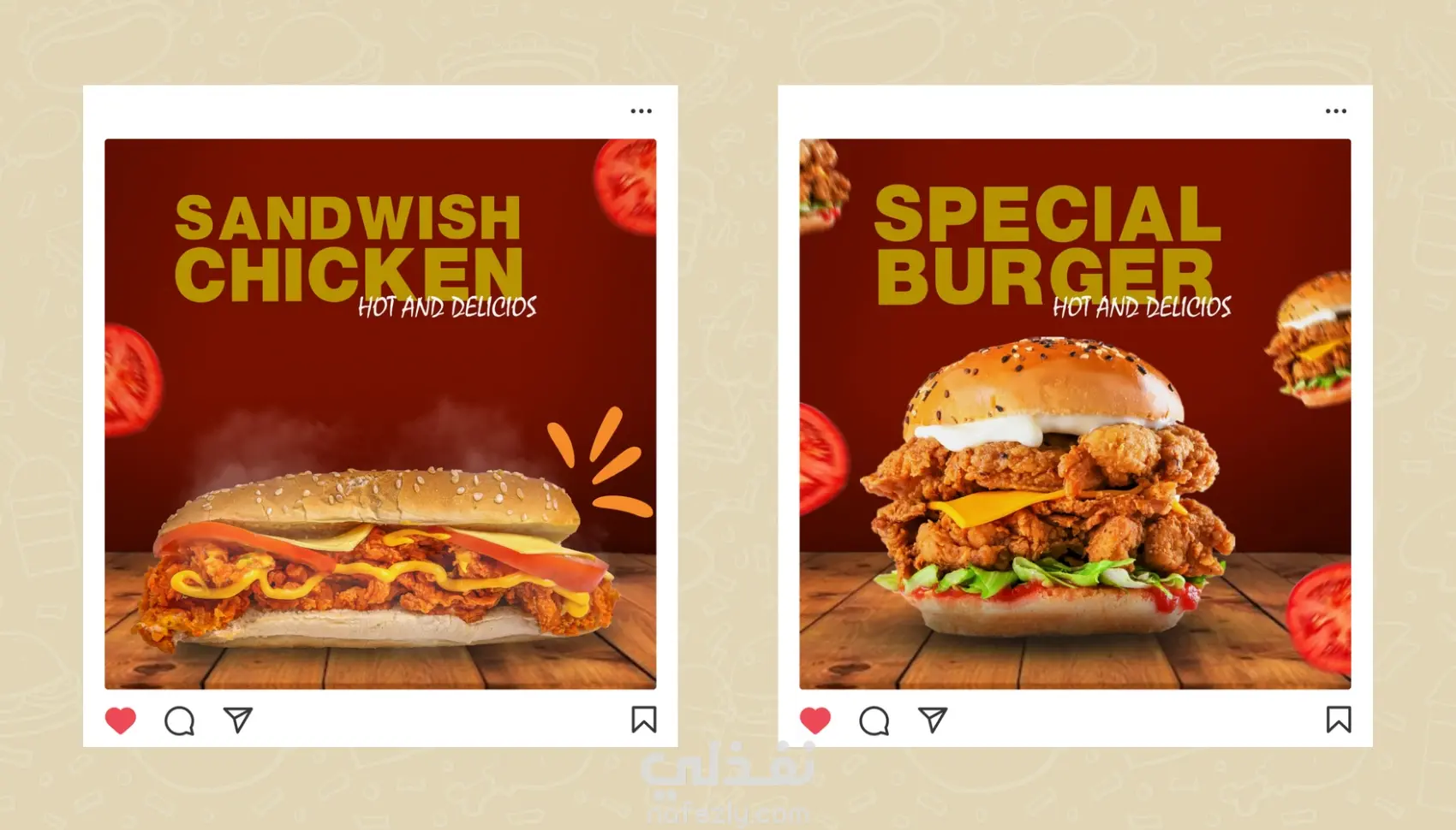 قمت بتنفيذ تصميمات سوشيال ميديا لمطعم وجبات سريعه مراعيه الالوان والهويه البصريه الخاصه به.
