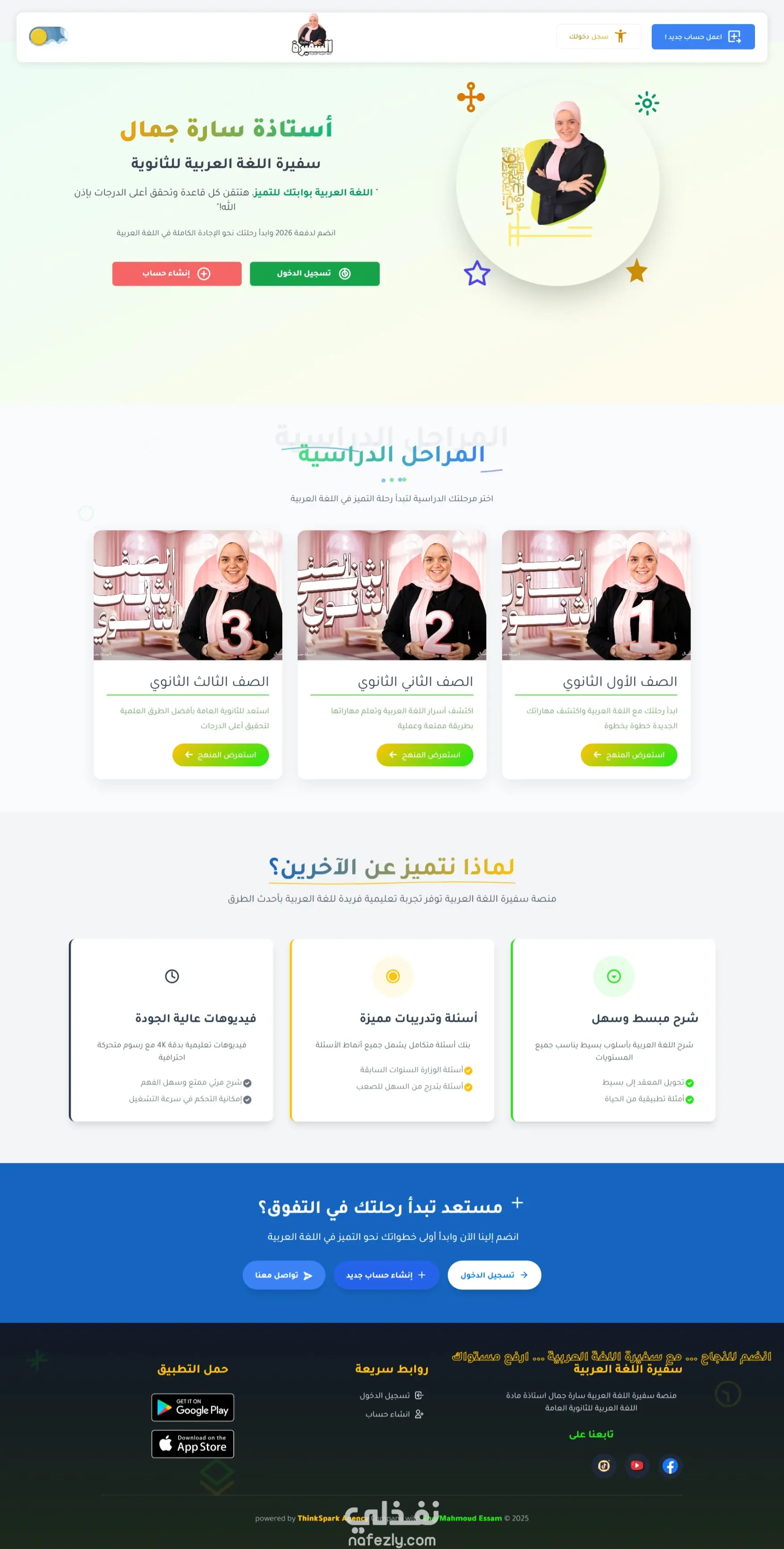 إنشاء منصة Mrs Sara Gamal – Arabic Teacher (منصة تعليمية SaaS)