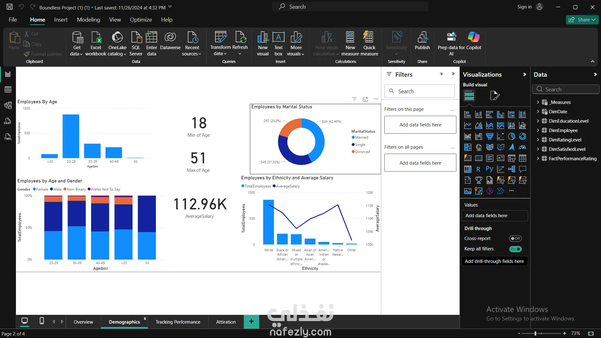 يعتمد المشروع على تنظيف وتجهيز البيانات أولاً لضمان جودتها، ثم استخدام أدوات تحليل مثل Excel أو Power BI لإنشاء تصورات ولوحات معلومات تساعد في فهم عناصر أساسية مثل توزيع الموظفين حسب القسم والجنس، تحليل معدلات الدوران والاحتفاظ بالموظفين، وتتبع مؤشرات الأداء الرئيسية