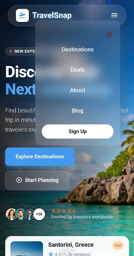 Front-End Hero Section for Travel Website