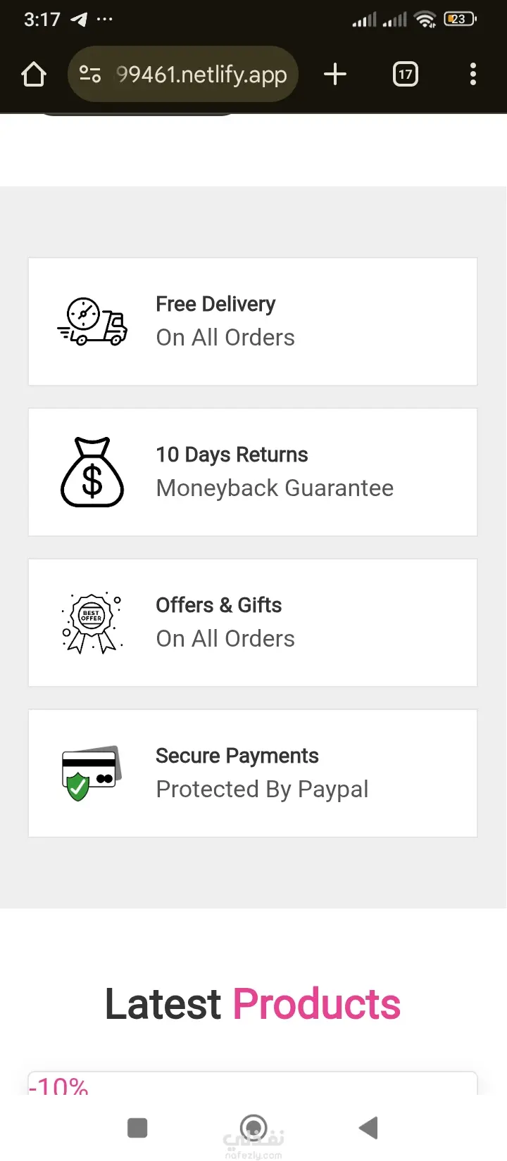 Service Highlights: Clear communication of value propositions, including Free Delivery, a 10-Day Moneyback Guarantee, and Secure Payments via PayPal.