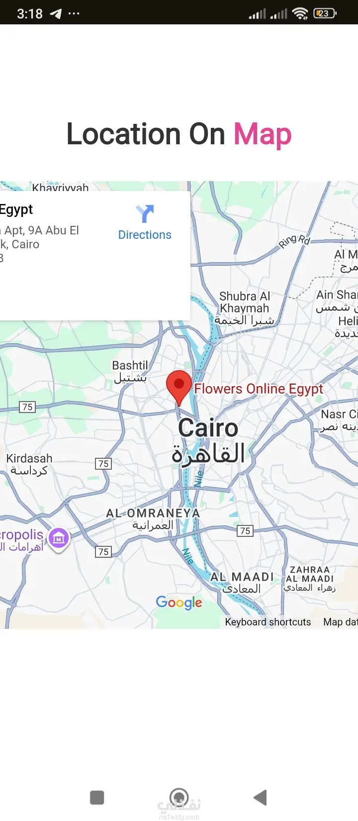 Interactive Mapping: An integrated Google Maps API pinpointing the physical shop location in Cairo, allowing users to get directions instantly.