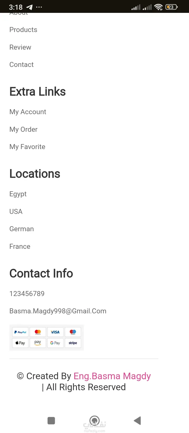 Global Reach: A footer architecture that supports regional links for Egypt, USA, Germany, and France, suggesting a scalable business model.