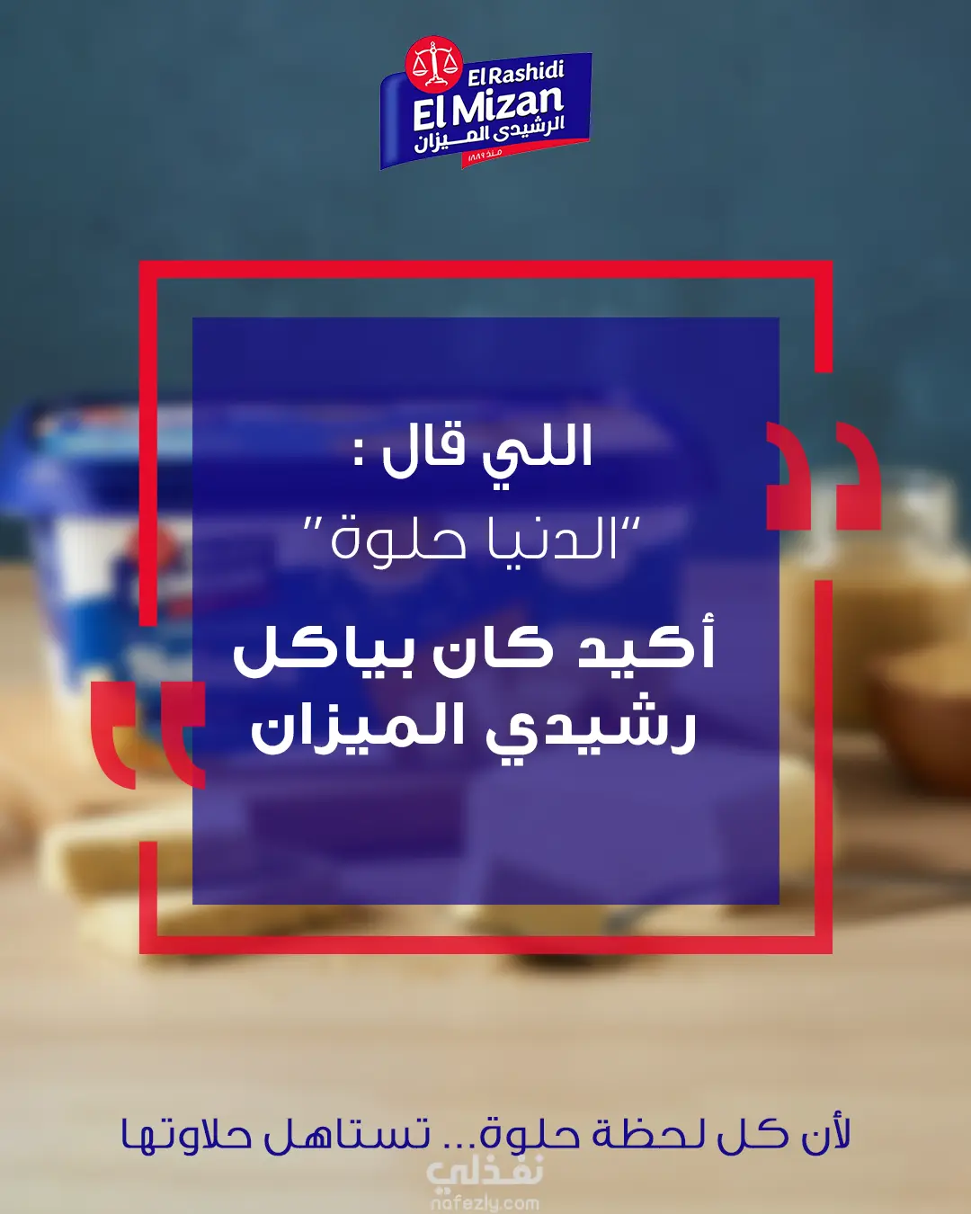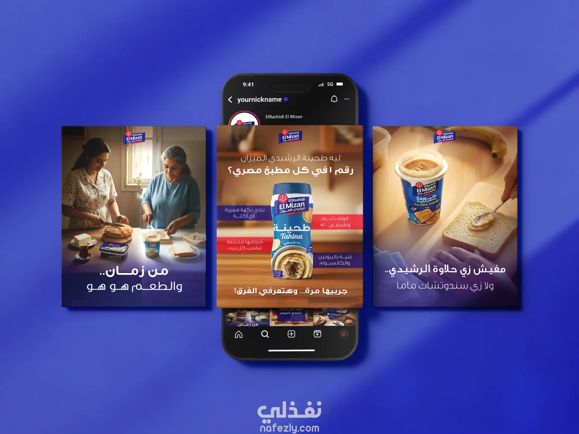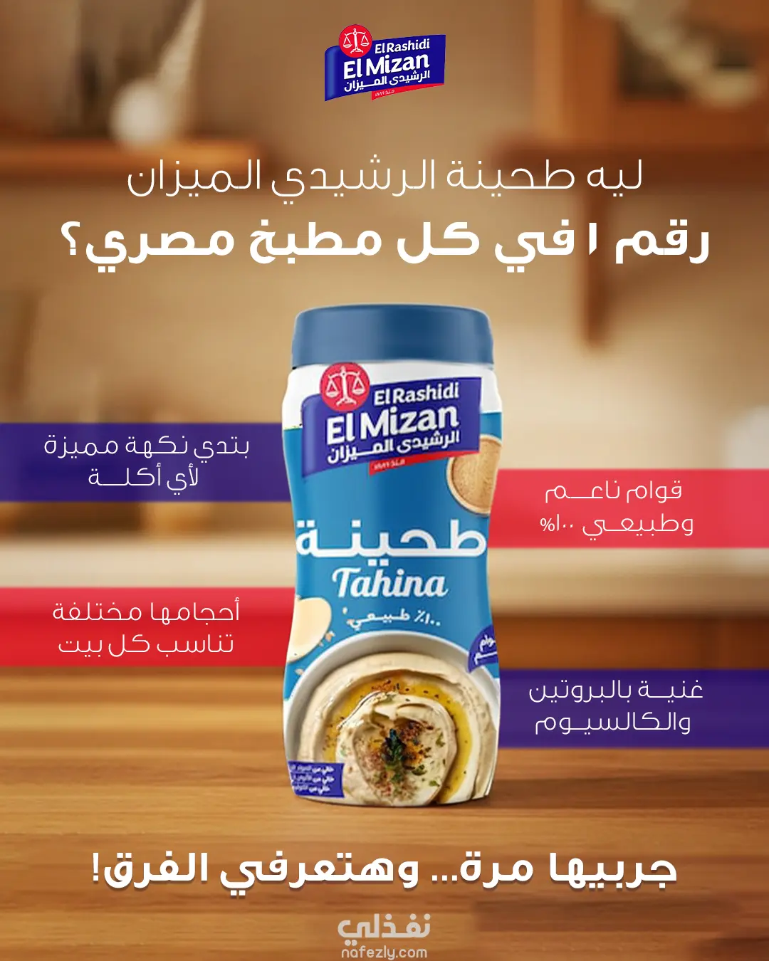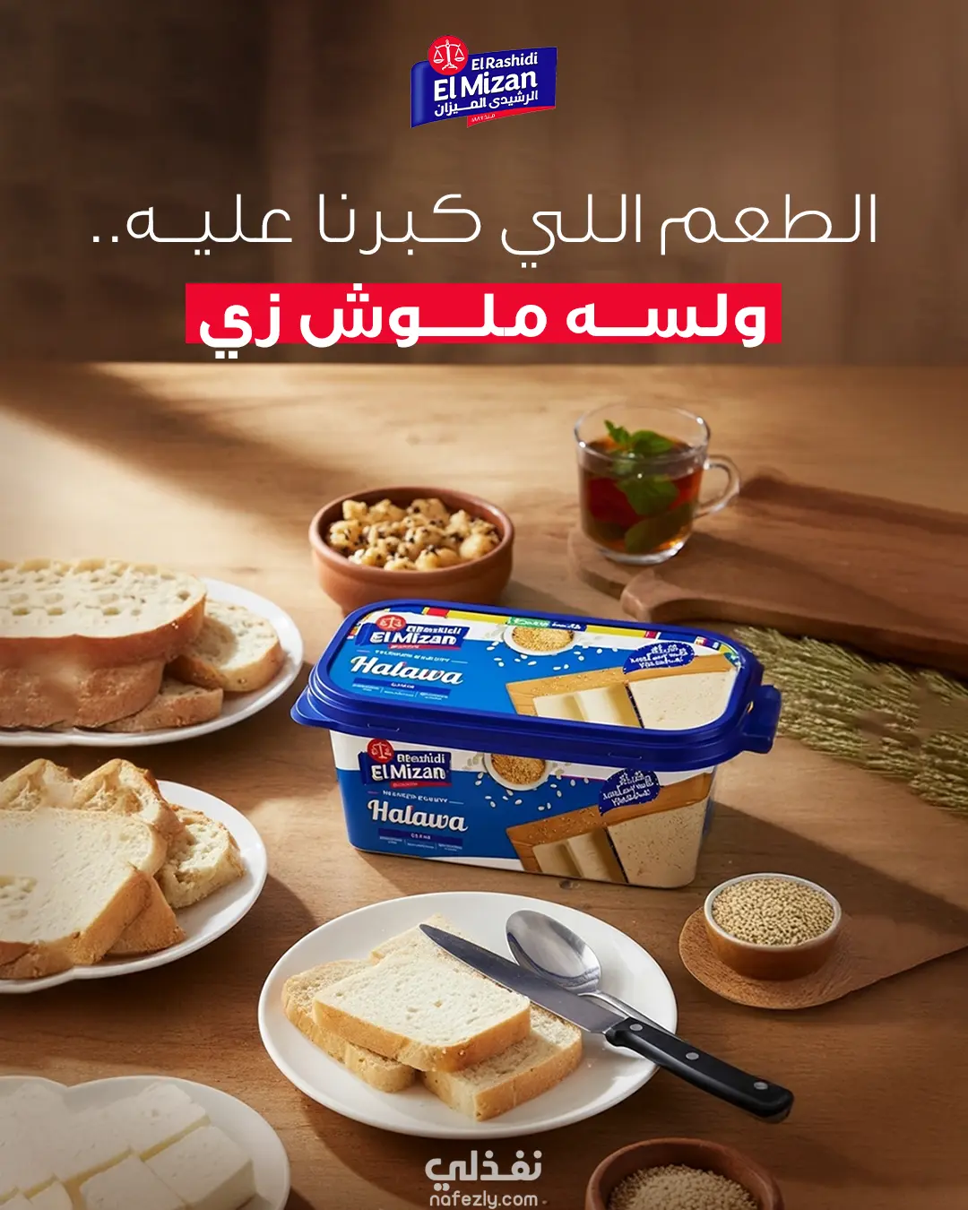 اعتمدت التصميمات على الحفاظ على هوية البراند من حيث الألوان والطابع العام، مع تقديم أفكار إبداعية تساعد على جذب الانتباه وتعزيز ارتباط الجمهور بالمنتج. تم التركيز على إبراز المنتج بشكل واضح، واستخدام عناصر بصرية داعمة تعكس طابع الرشيدي الميزان كعلامة تجارية أصيلة وموثوقة.