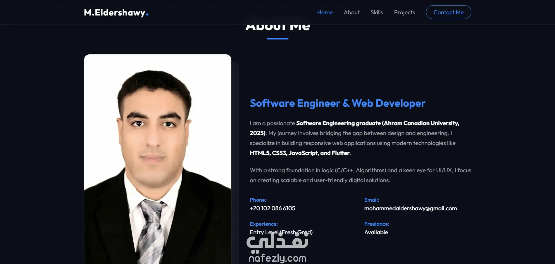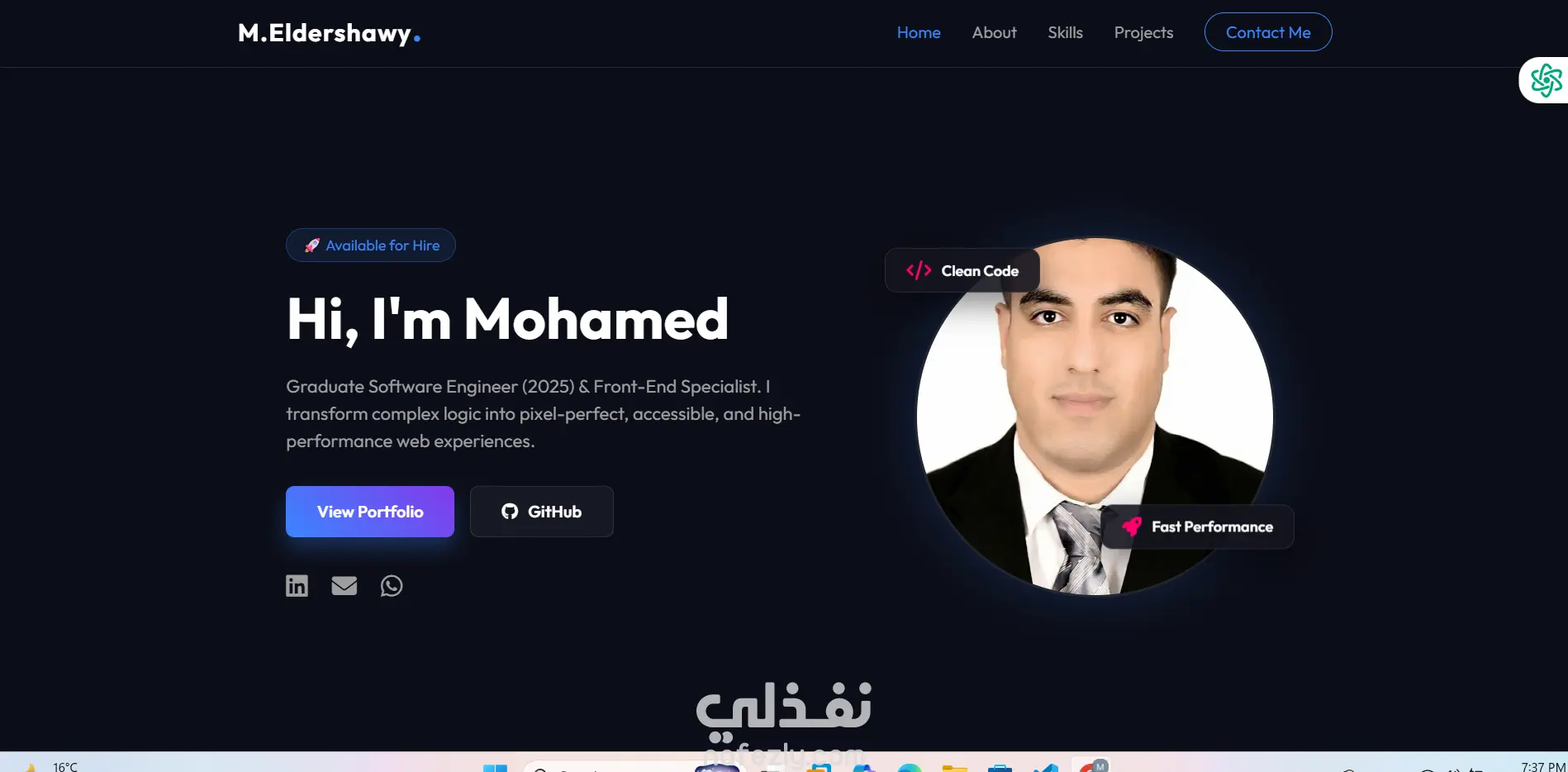 قمت بتصميم وتطوير موقع معرض أعمال شخصي (Portfolio Website) يهدف إلى إبراز الهوية الرقمية بشكل احترافي وجذب العملاء من خلال تصميم عصري وتجربة مستخدم سلسة. تم التركيز على تقديم الموقع بأسلوب بسيط وواضح يساعد الزائر على التعرف بسرعة على المهارات، الخدمات، وسابقة الأعمال، مع تسهيل التواصل المباشر. مميزات الموقع: تصميم عصري واحترافي (Modern UI) يعكس الثقة والاهتمام بالتفاصيل متجاوب بالكامل (Fully Responsive) ويعمل بكفاءة على جميع الأجهزة تجربة مستخدم سلسة (Smooth UX) وتنقل واضح بين الأقسام قسم مخصص لعرض المشاريع وسابقة الأعمال نموذج تواصل مباشر (Contact Form) لتسهيل تواصل العملاء التقنيات المستخدمة: HTML5 (هيكلة دلالية احترافية) CSS3 (Flexbox – Animations) JavaScript (التفاعلية وتحسين تجربة الاستخدام) Font Awesome (الأيقونات) هذا المشروع يعكس قدرتي على تحويل الأفكار إلى واجهات ويب عملية، نظيفة، وجذابة تساعد العملاء على بناء حضور رقمي قوي. جاهز لتنفيذ معرض أعمالك الشخصي أو موقع شركتك بنفس الجودة والاحترافية. تواصل معي الآن لنبدأ!