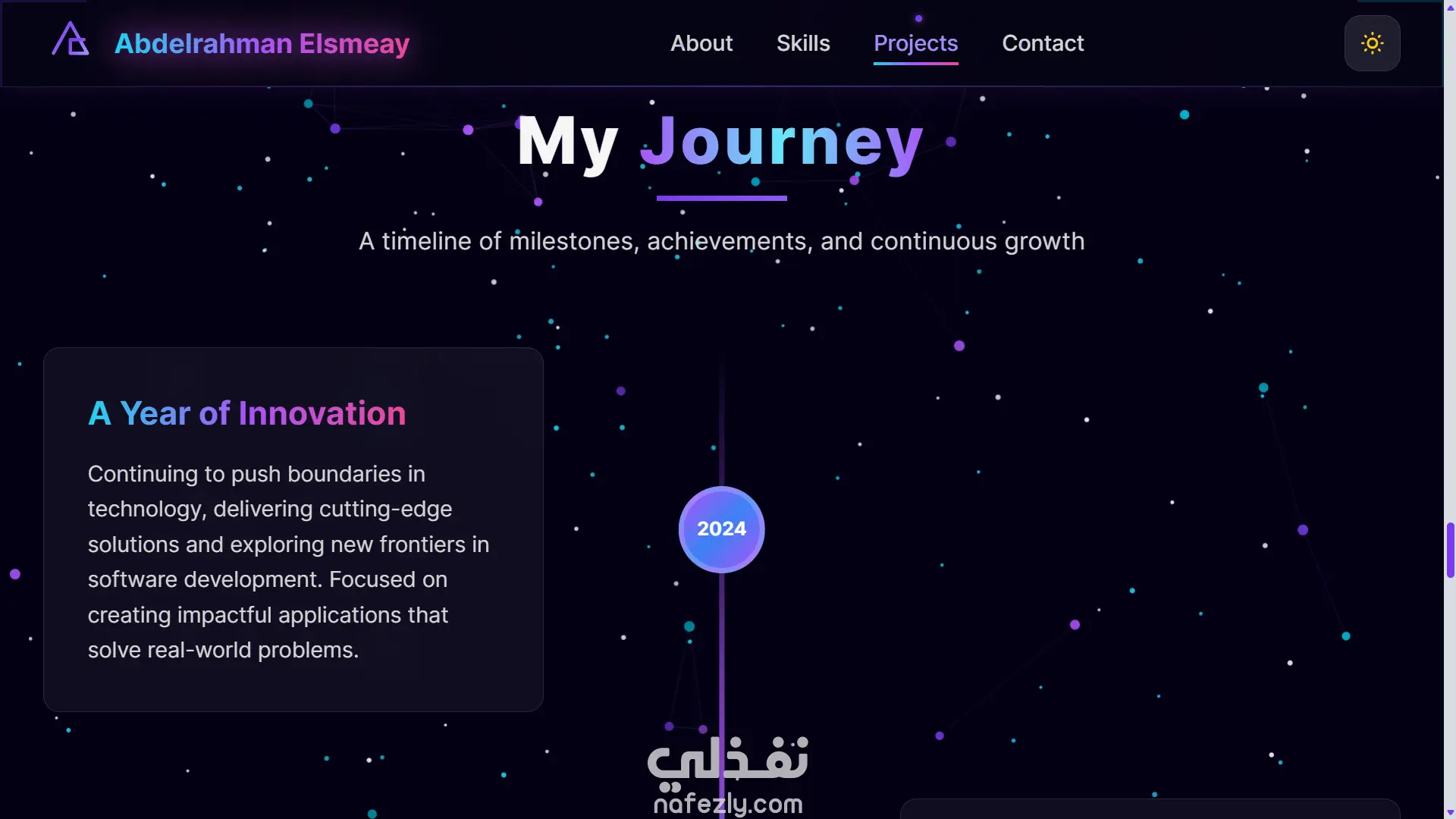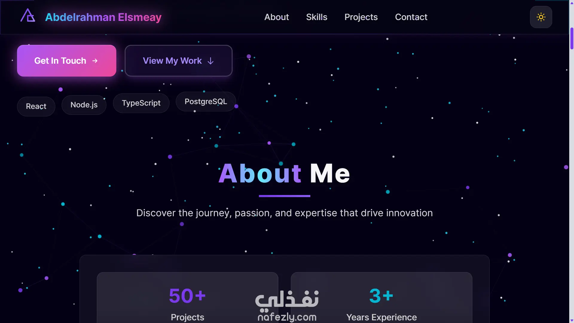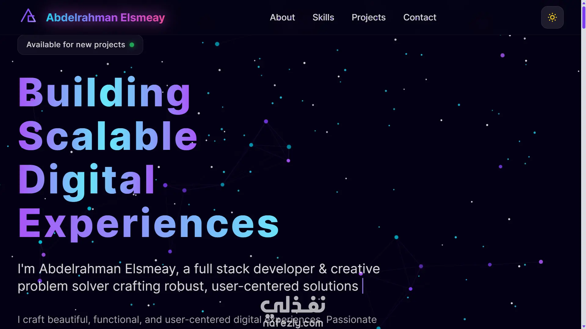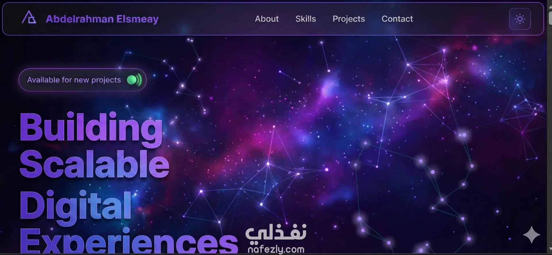 قمت بتصميم وتطوير موقعي الشخصي ليكون واجهة احترافية تعرض مهاراتي وأعمالي السابقة. تم التركيز في هذا المشروع على التصميم العصري (Modern Design) وتجربة المستخدم السلسة ليعكس الهوية التقنية المتقدمة.