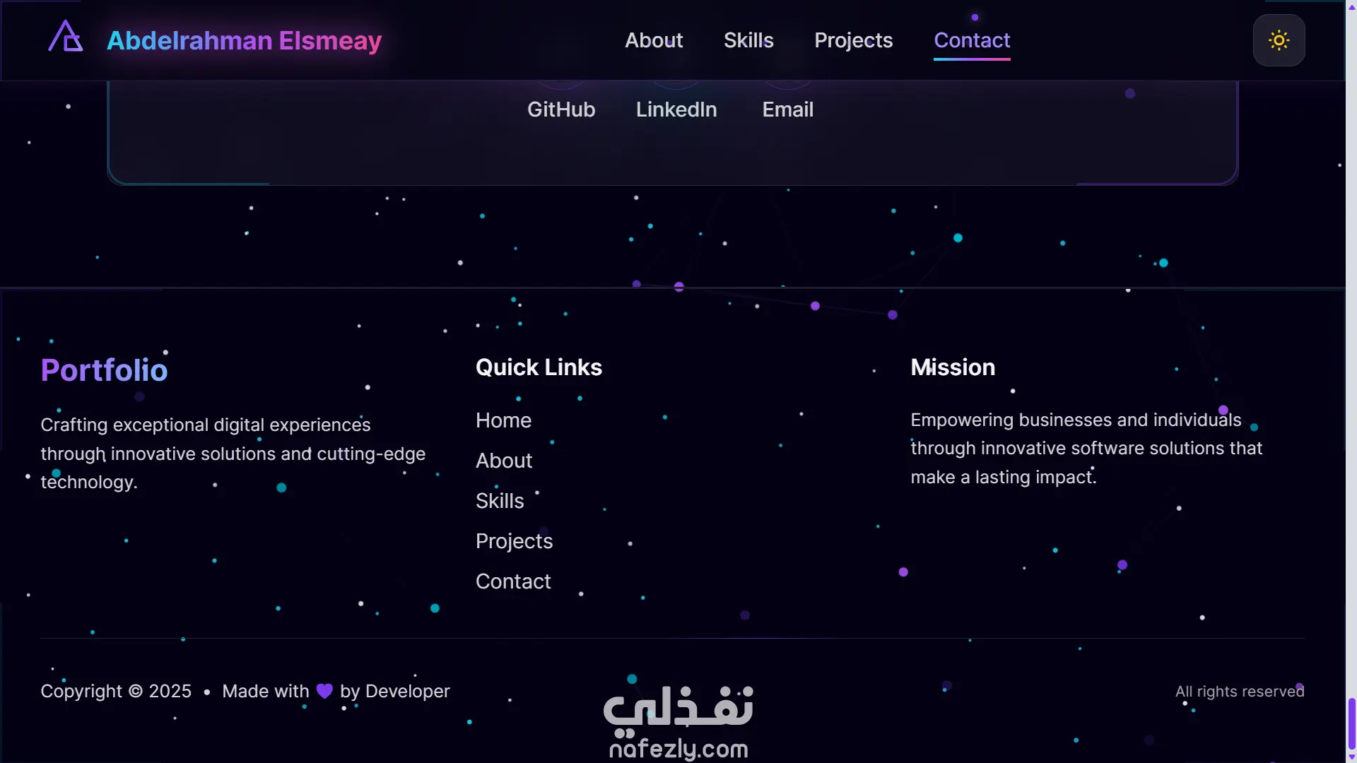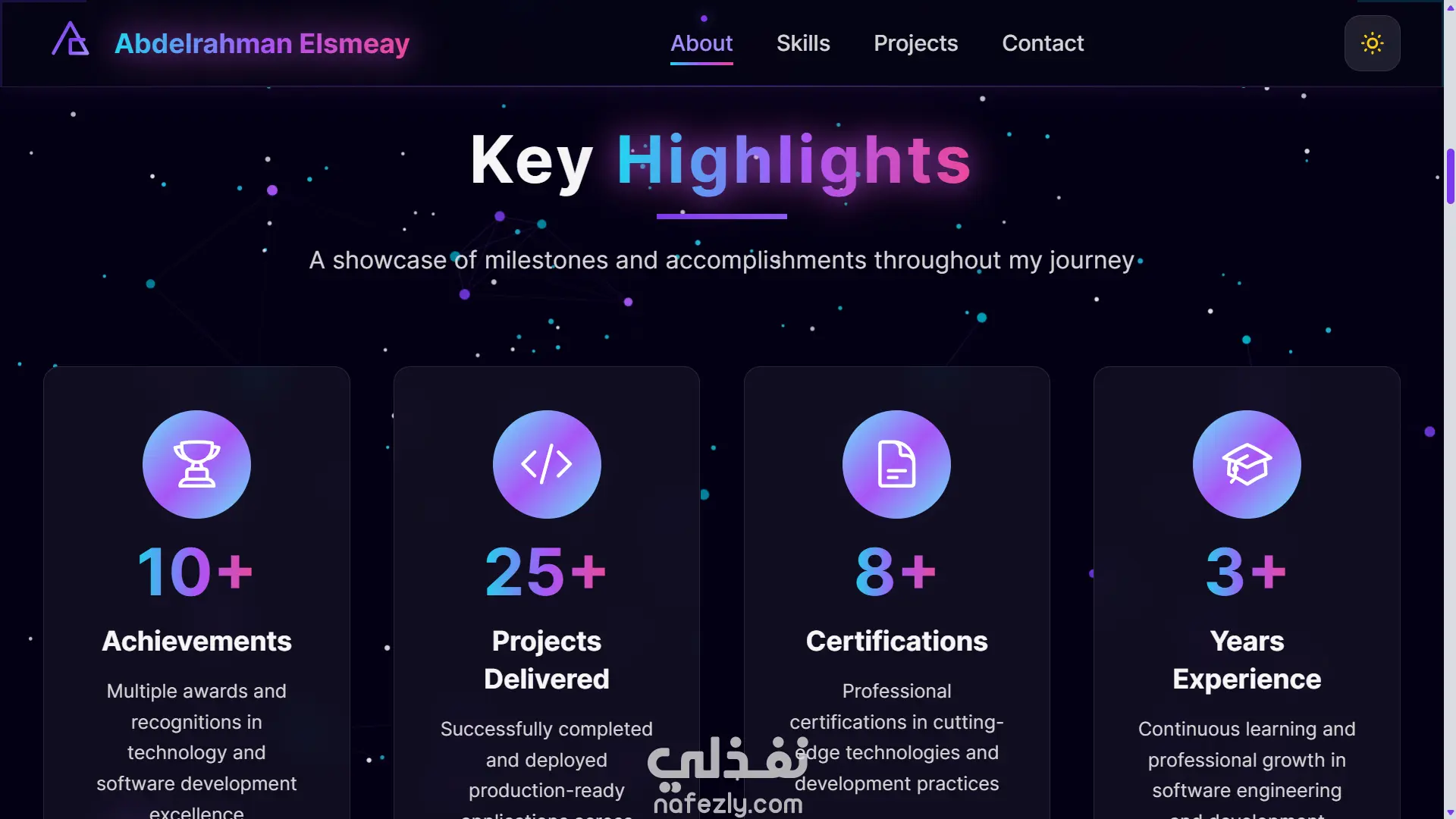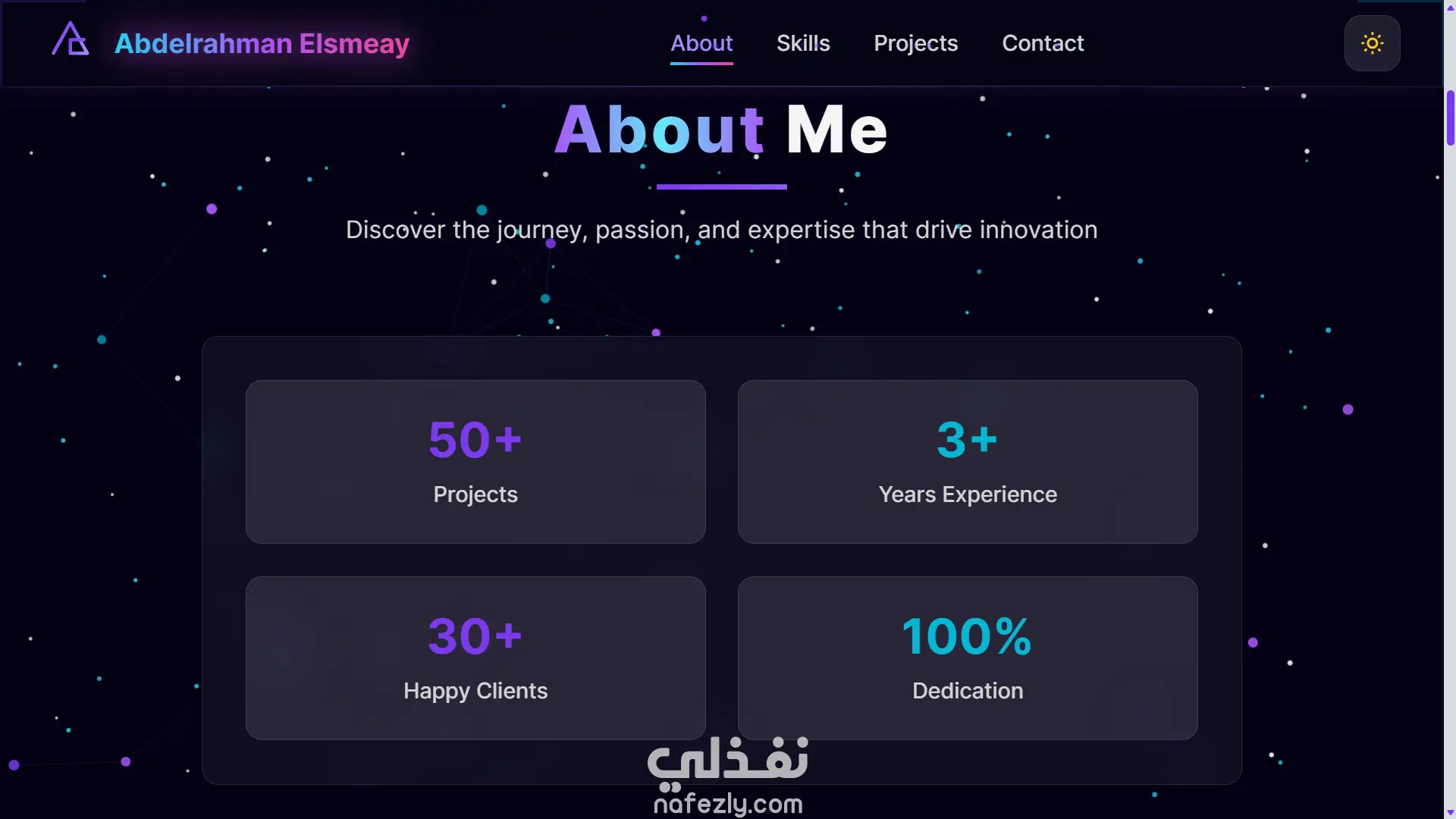 ✅ تصميم إبداعي: واجهة عصرية بنمط "Dark Mode" مع تأثيرات بصرية جذابة وتصميم متجاوب 100%.