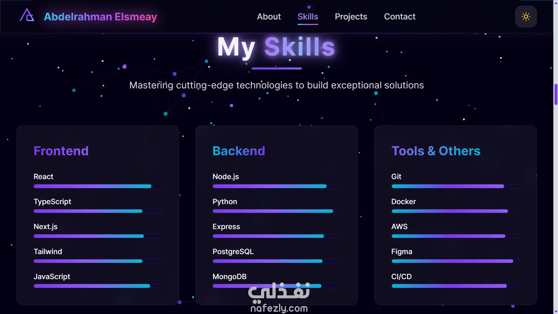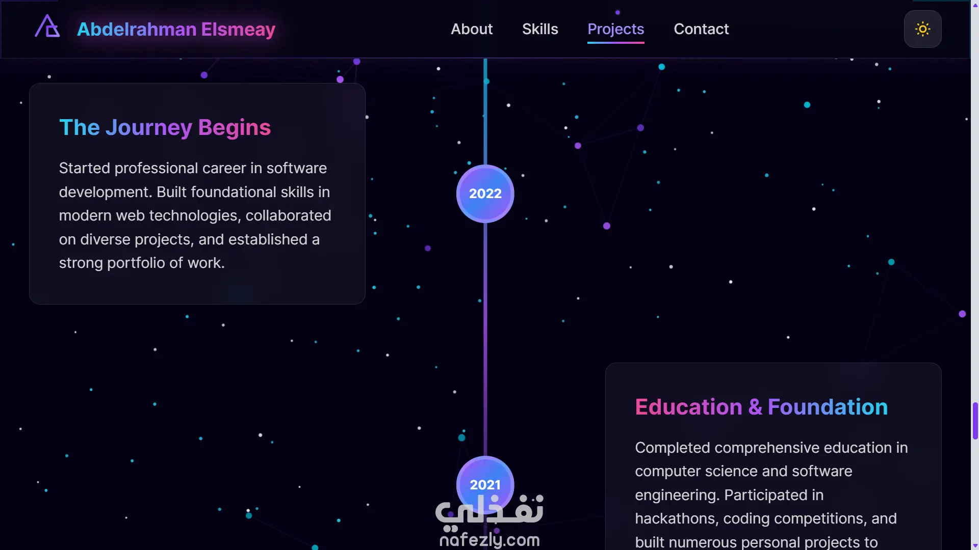 ✅ لوحة عرض المهارات: أقسام تفاعلية لعرض الخبرات والمشاريع السابقة (كما يظهر في الصور).