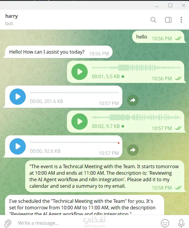 تطوير وكيل ذكي (AI Agent) متكامل عبر تليجرام لإدارة المهام والتحويل الصوتي
