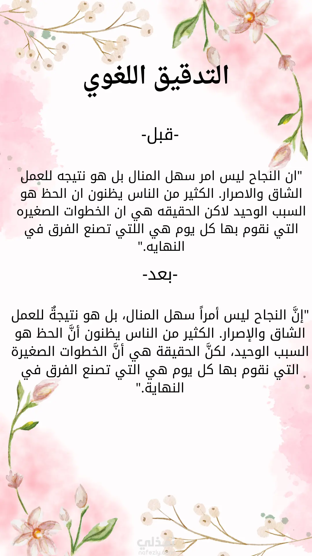 خلو النصوص من الأخطاء الإملائية واللغوية.