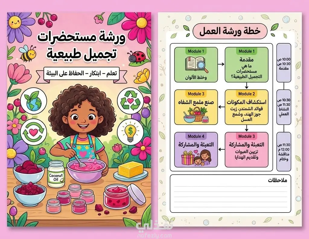 تصميم ومحتوى ورشة عمل لمعسكر اطفال لصناعه مستحضرات التجميل الطبيعية
