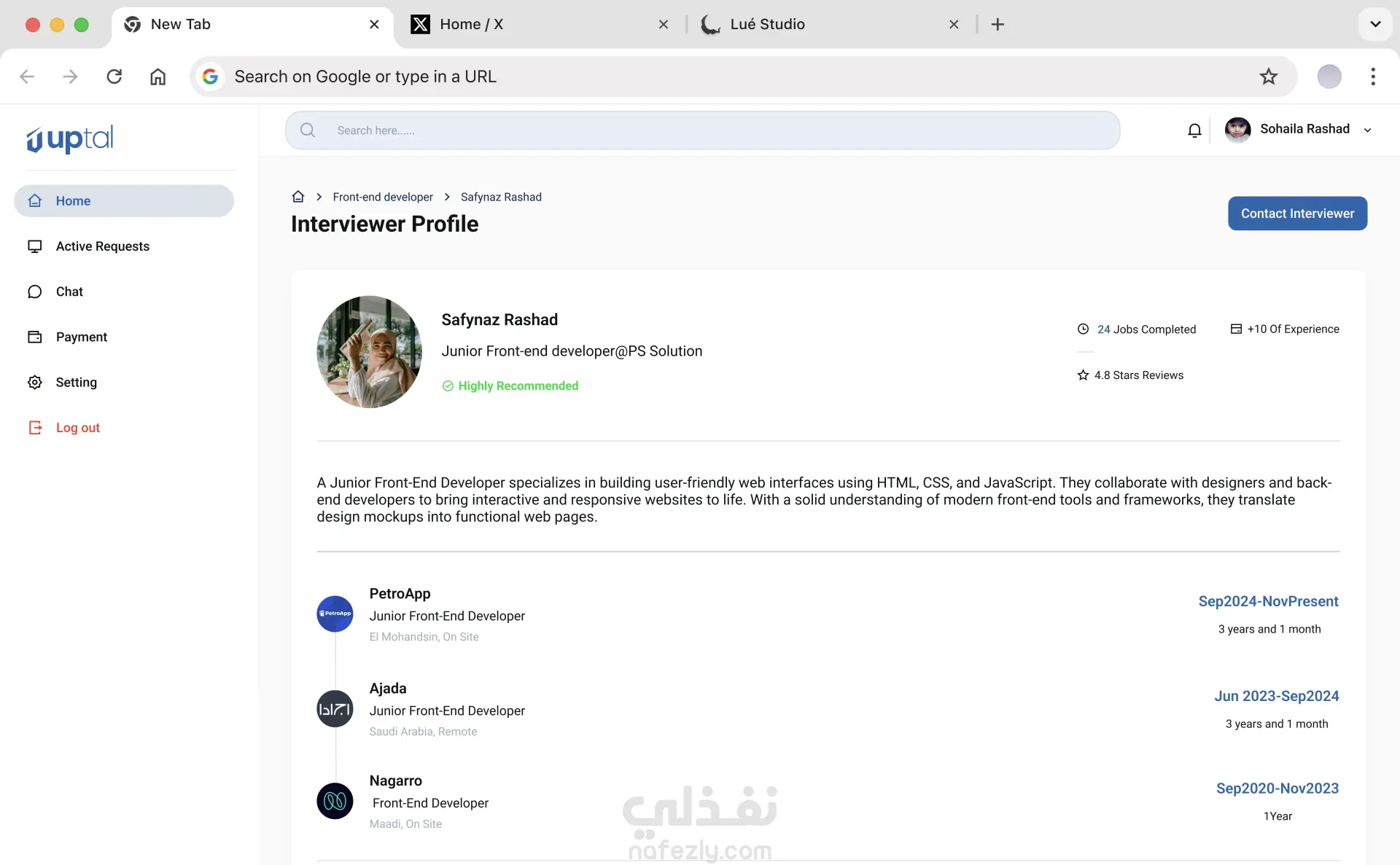 هذا المشروع يهدف إلى تصميم نظام لإدارة المقابلات والتوظيف بطريقة سهلة وفعّالة، مع واجهات واضحة وتجربة مستخدم سلسة تساعد أصحاب الأعمال على جدولة المقابلات، تقييم المرشحين، ومتابعة عملية التوظيف بكفاءة. ركز التصميم على تبسيط الإجراءات، إبراز المعلومات المهمة مثل تفاصيل المرشح وجدول المقابلات، وتحسين تجربة المستخدم لضمان اتخاذ قرارات توظيف سريعة ودقيقة.