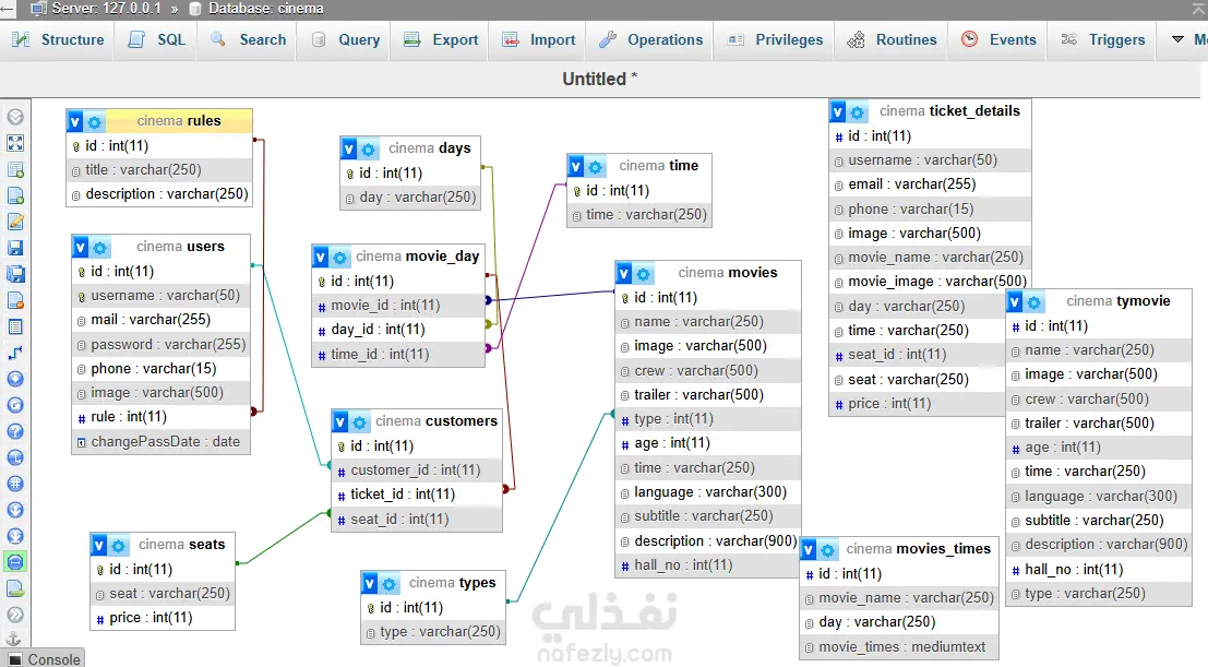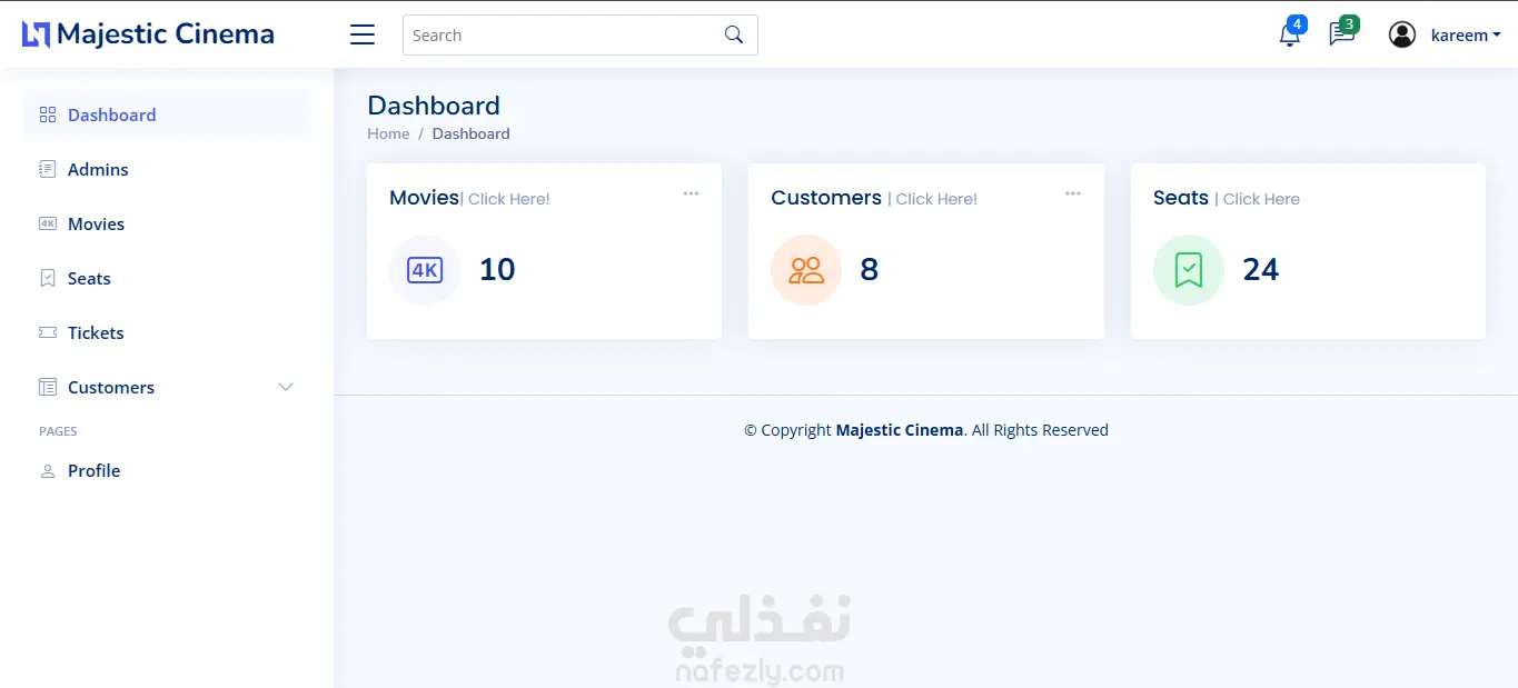 عملنا في فريق لتطوير نظام حجز تذاكر سينما متكامل (Full-Stack) مع دعم كامل لأنظمة تسجيل الدخول، الصلاحيات، وإدارة الجلسات. يمكن للمستخدمين التسجيل وتسجيل الدخول وتصفح الأفلام واختيار المقاعد واستلام تفاصيل التذاكر. قمنا بتنفيذ التحقق من صحة النماذج (Form Validation) وعمليات CRUD بشكل آمن. يتضمن النظام لوحة تحكم قوية للمسؤول لإدارة الأفلام، متابعة حجوزات العملاء، عرض المستخدمين المسجلين، والتواصل مع العملاء لتأكيد حجز التذاكر. تتم إدارة البيانات بشكل آمن باستخدام MySQL.