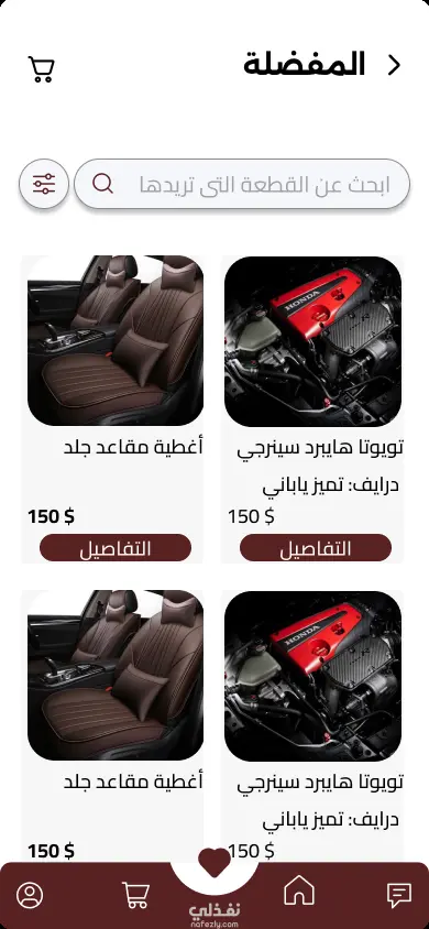 تطبيق تجارة إلكترونية مبتكر لقطع غيار وإكسسوارات السيارات يوفّر تجربة تسوّق سلسة. بواجهة حديثة وسهلة الاستخدام، يتيح للمستخدمين تصفّح المنتجات بسهولة، وحجز ميكانيكيين عند الطلب، والحصول على دعم فوري عبر شات بوت ذكي — ليقدّم حلًا متكاملًا ومريحًا لخدمات السيارات في أي وقت ومن أي مكان.