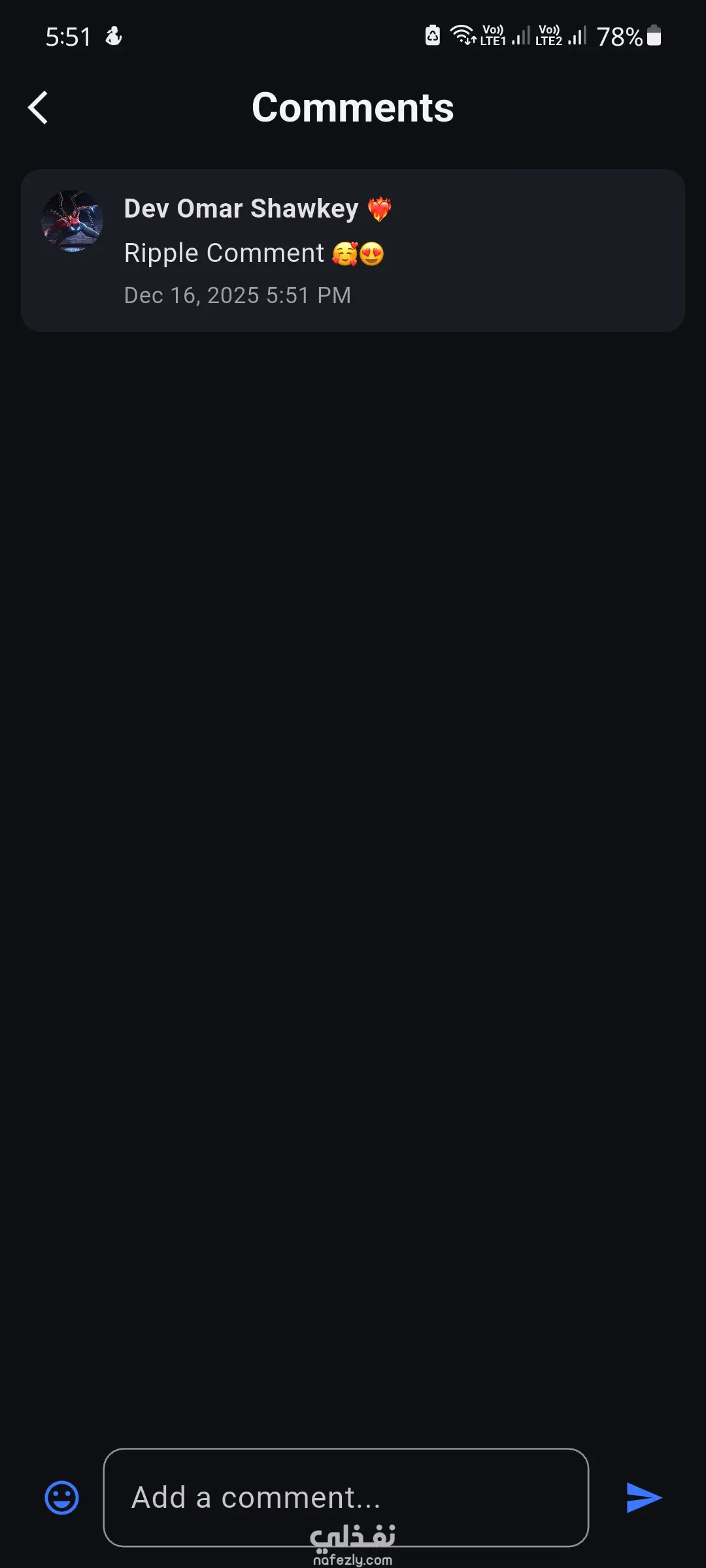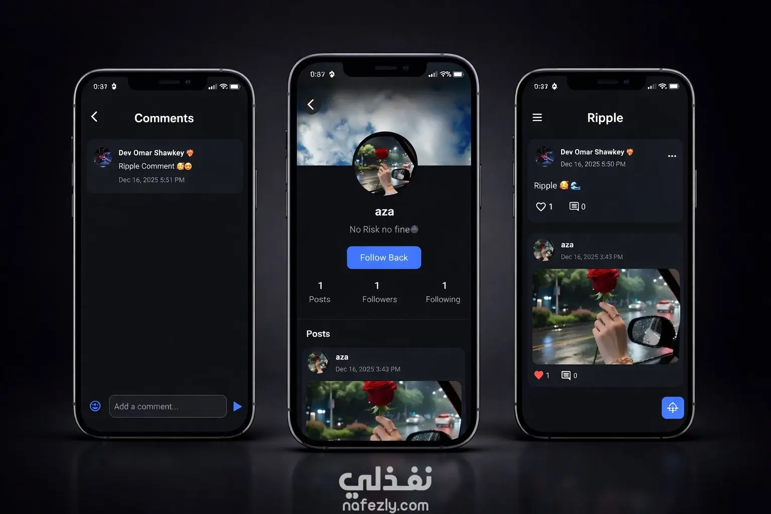 🚀 Ripple — تطبيق Social Media مبني بـ Flutter Ripple هو تطبيق Social Media تم تطويره باستخدام Flutter بهدف تطبيق مفاهيم حقيقية مستخدمة في التطبيقات الإنتاجية، مع تركيز قوي على الجودة، الأداء، والتنظيم المعماري القابل للتوسع. 🧩 تفاصيل التطبيق: نظام تسجيل دخول وإنشاء حسابات باستخدام Firebase Authentication Home Feed لعرض المنشورات إنشاء منشورات مع دعم الصور التفاعل مع المنشورات (Like / Comment) نظام متابعة بين المستخدمين إدارة وتعديل الملف الشخصي إعدادات التطبيق (اللغة – الثيم) 🧠 الجانب التقني: تنظيم معماري مستوحى من Clean Architecture إدارة الحالة باستخدام BLoC إشعارات فورية (لايك – تعليق – متابعة) باستخدام OneSignal دعم اللغتين العربية والإنجليزية Firebase Authentication & Cloud Firestore كود منظم وقابل للتوسع وسهل الصيانة هذا المشروع يبرز قدرتي على: بناء تطبيقات Social Media متكاملة التعامل مع سيناريوهات حقيقية (Auth – Feed – Realtime Updates) تقديم كود احترافي جاهز للتطوير والنمو يسعدني تنفيذ مشاريع مشابهة أو تطوير تطبيقات Flutter باحترافية عالية، مع التزام كامل بالجودة والمتطلبات.