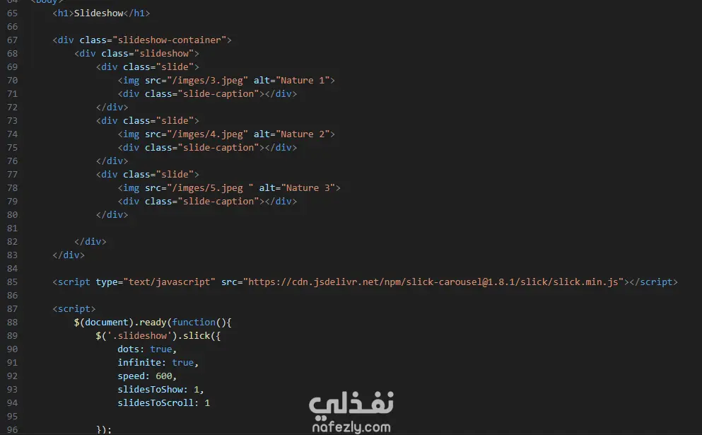 معرض صور تفاعلي باستخدام مكتبة Slick Slider مع jQuery. يمكن للمستخدم التصفح بين الصور مع مؤشرات تحكم وتجربة سلسة. تمرير صور سلس مع حركة تلقائية مؤشرات (Dots) للتنقل تكبير الصور وتدويرها تصميم بسيط وأنيق التقنيات المستخدمة: jQuery Slick Slider Plugin HTML, CSS