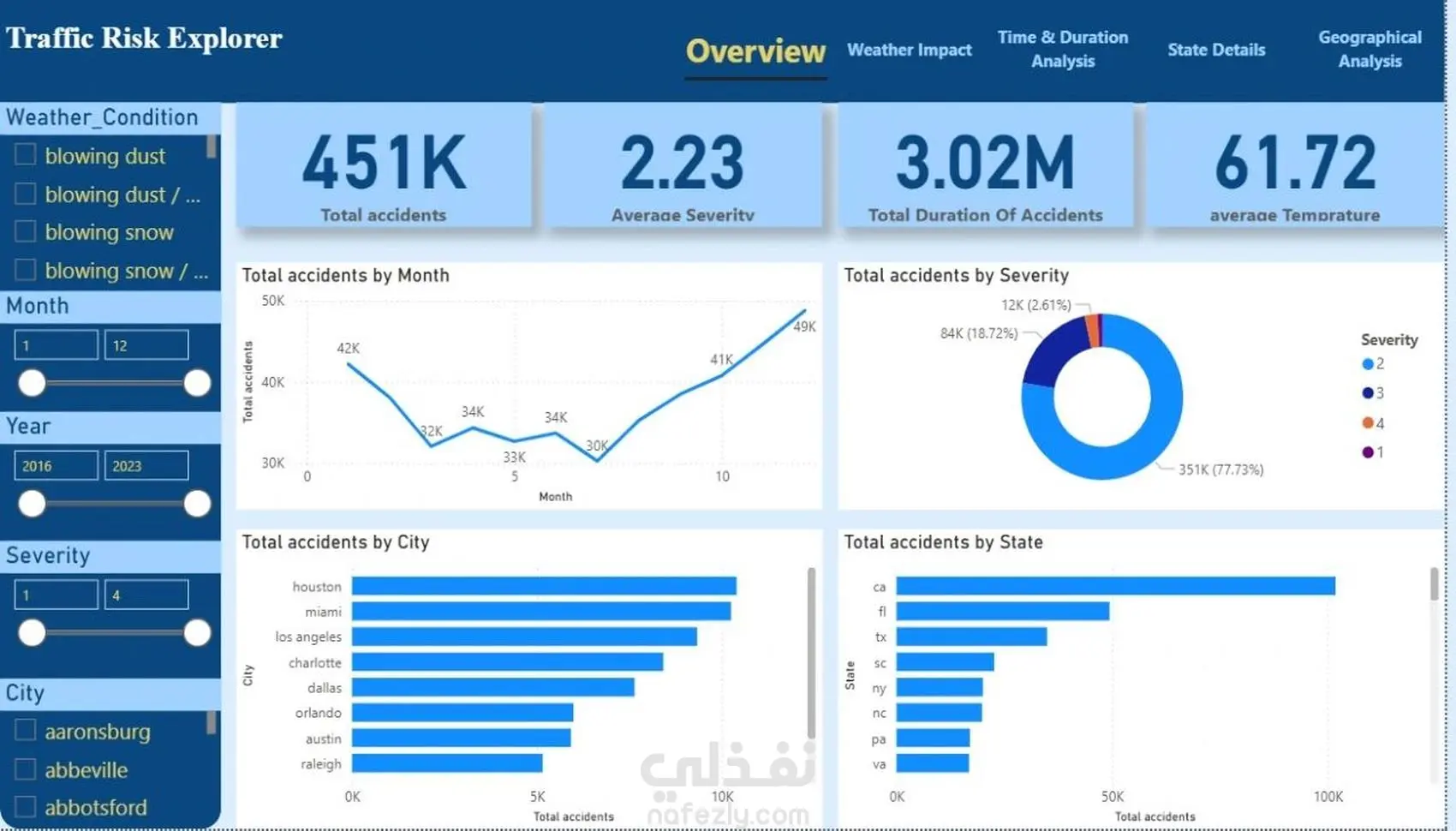 تصميم داشبورد تفاعلية لتحليل الحوادث المرورية باور بي اي
