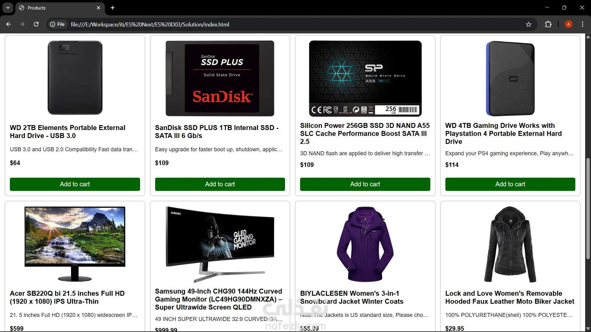 2 - إمكانية إضافة منتج إلى السلة من خلال الصفحة الرئيسية