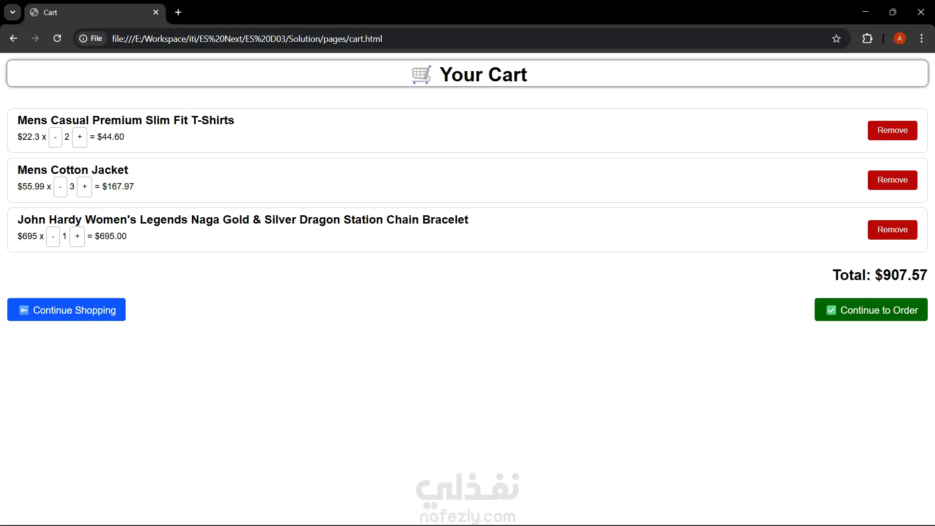2 صفحة لعرض السلة (يتم عرض المنتجات التى قام المستخدم بإضافتها إلى السلة)