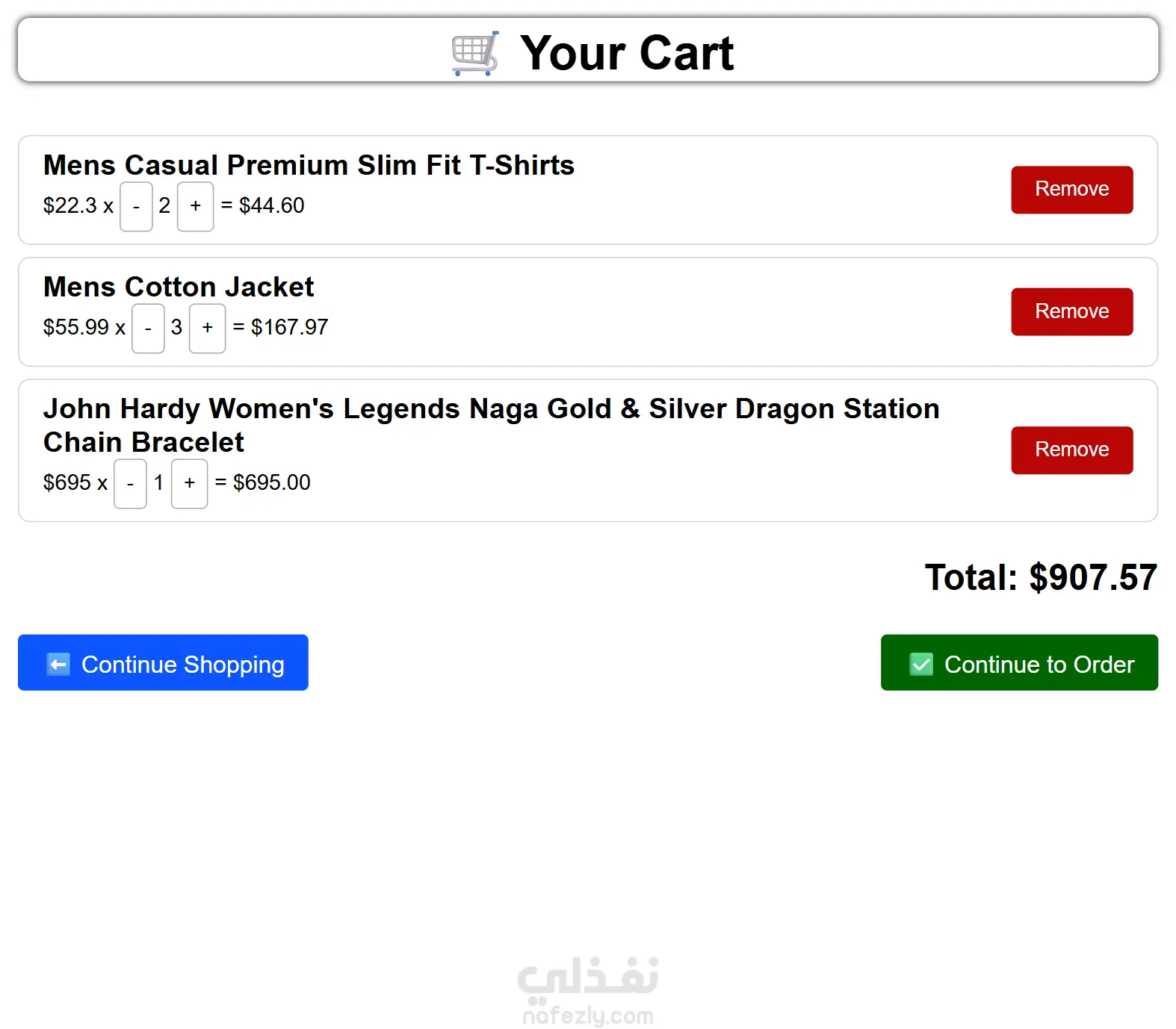 4 - إمكانية حذف منتج أو أكثر من السلة