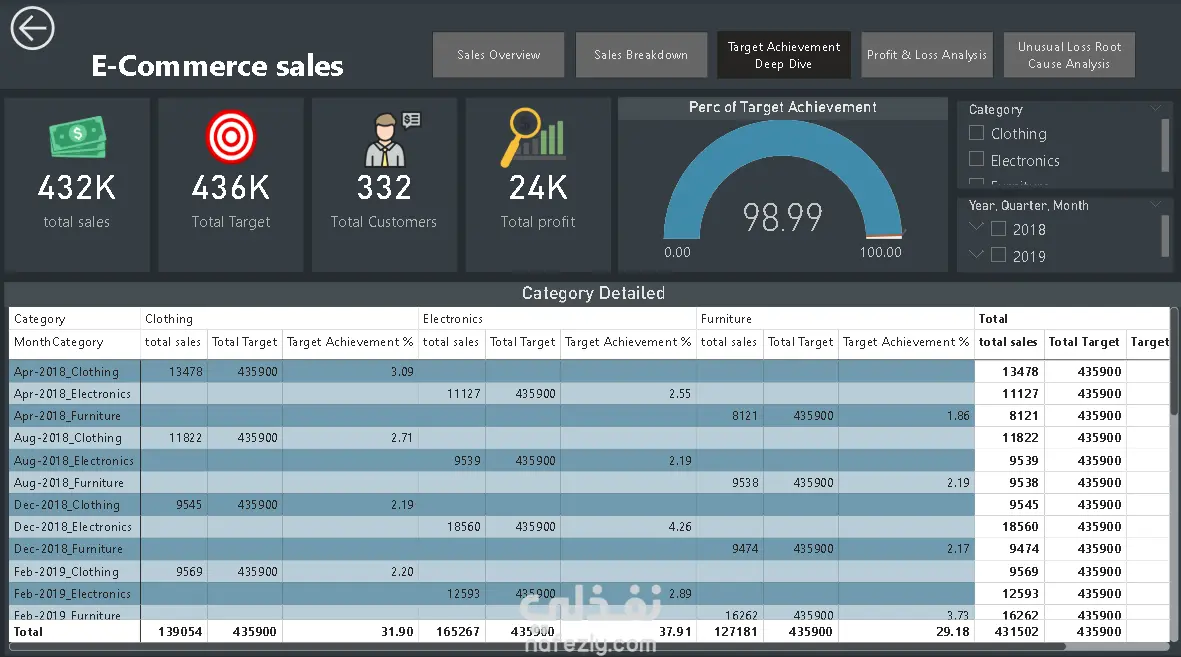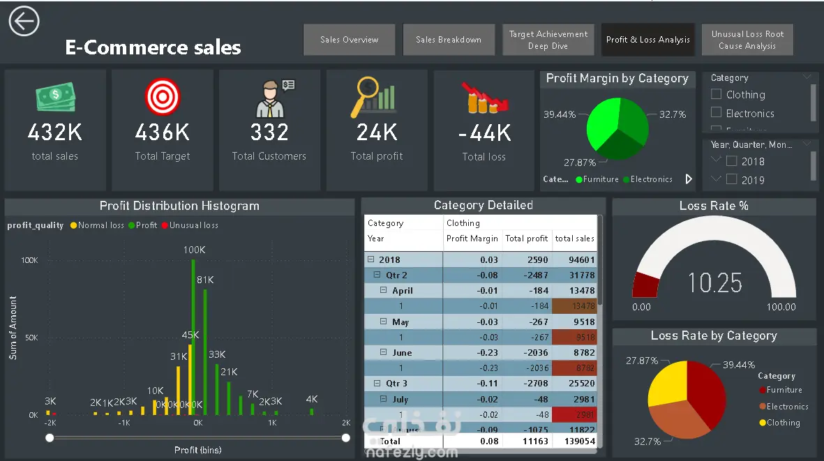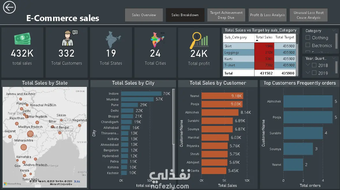 اشتغلت على مشروع E-Commerce Sales Performance Analysis بهدف مش بس عرض البيانات، لكن تحديد أسباب الخسائر وتحليل الربحية باستخدام منهج تحليلى وإحصائى مش مجرد Visualization. بدأت بالبيانات من 3 جداول وقمت بتحميلها ومعالجتها على MySQL. كان التحدي الأساسي هو تنفيذ Data Cleaning بالكامل على SQL بدل Power Query، وده شمل: بناء الـ Tables تعيين Primary & Foreign Keys توحيد صيغة التاريخ كشف ومعالجة القيم الشاذة بعد كده انتقلت إلى Power BI: عملت Data Modeling مضبوط أنشأت Measures باستخدام DAX وصممت 5 Dashboards تحليلية: * Sales Overview * Sales Breakdown by Category & Customer * Target Achievement Insight * Profit & Loss Diagnostic Analysis * Unusual Loss Root Cause Analysis الصفحة الأخيرة كانت الأهم استخدمت فيها التحليل الإحصائي (Outlier Detection) لتحديد العملاء اللي اتسببوا فيUnusual loss. النتيجة كانت إن 60% من الخسارة جاية من 2 عملاء فقط، بسبب شراء كميات كبيرة من منتجات بهوامش ربح منخفضة Low-Margin, بالإضافة لتأثير التوصيل والخصومات — وده يوضح إن المشكلة إستراتيجية تسعير منتجات وليس مبيعات.