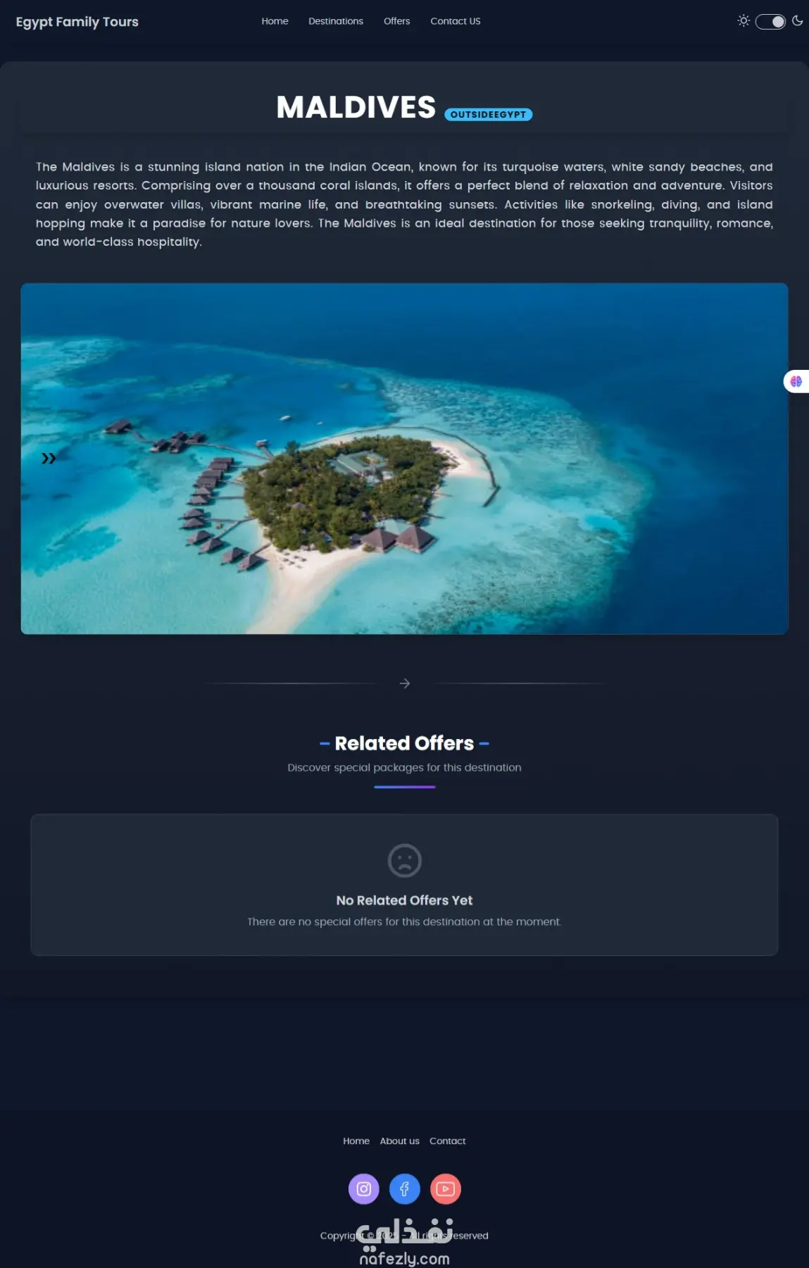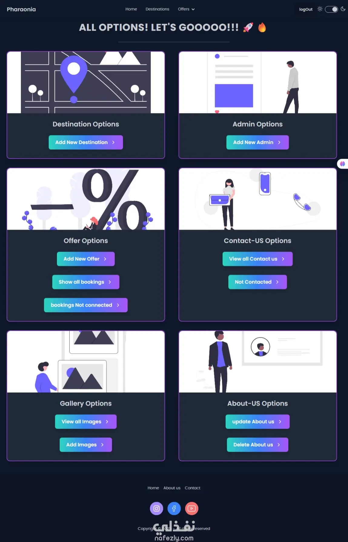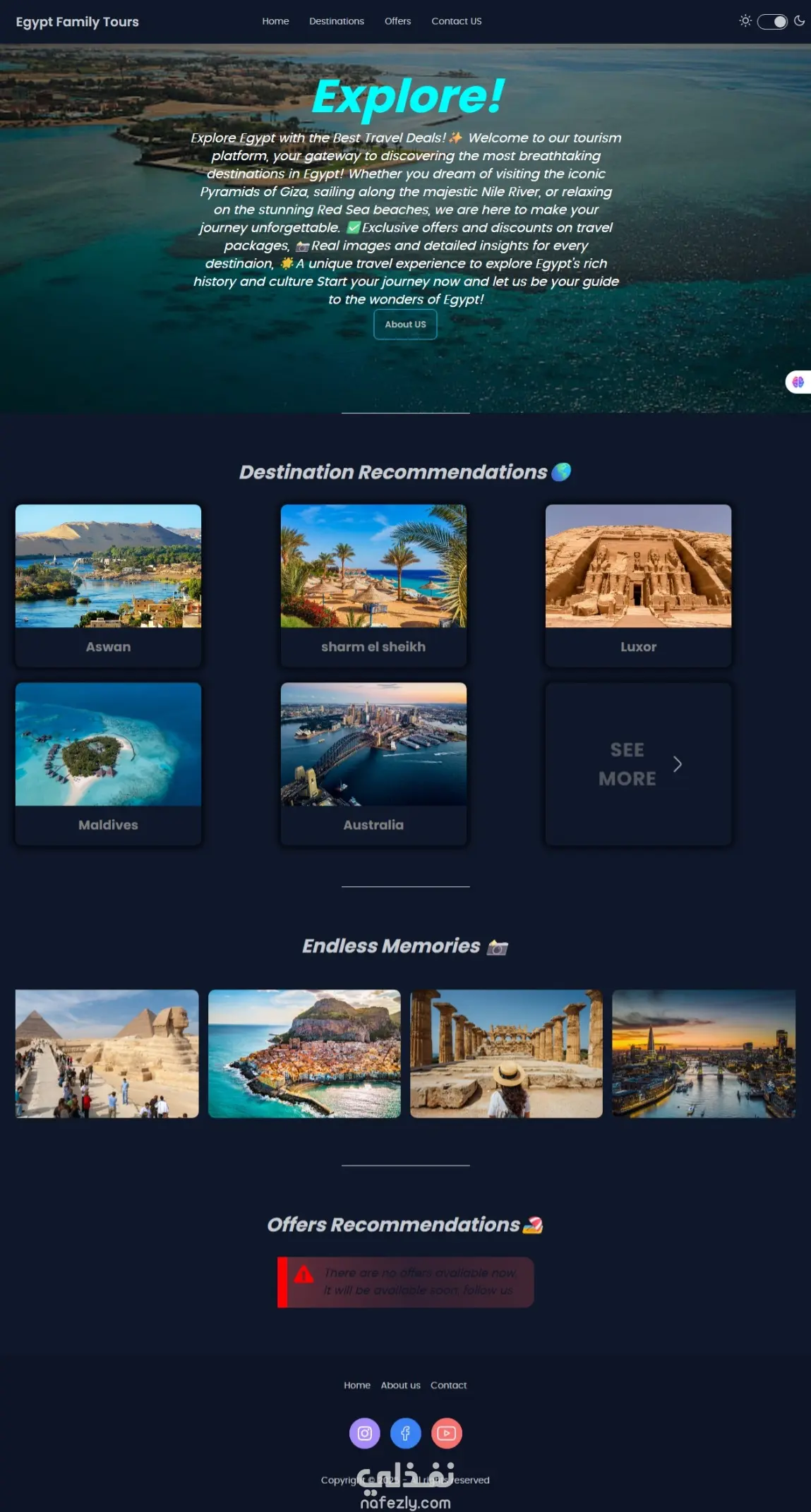 Pharaonia هو مشروع Full-Stack Web Application يهدف إلى إنشاء منصة رقمية متكاملة للترويج للسياحة داخل جمهورية مصر العربية 🇪🇬، من خلال تقديم تجربة مستخدم سلسة تجمع بين واجهات أمامية جذابة ونظام خلفي قوي لإدارة البيانات والمحتوى. 🔹 Front-End يوفّر الجزء الأمامي من النظام واجهات حديثة وتفاعلية تمكّن المستخدم من: استكشاف أهم المعالم السياحية داخل مصر (الآثار، المدن السياحية، المتاحف، الشواطئ…) تصفح تفاصيل الأماكن السياحية مع الصور والوصف والمعلومات الأساسية التنقل بسهولة داخل الموقع من خلال تصميم متجاوب يعمل على جميع الأجهزة تجربة مستخدم مريحة تعكس الهوية الحضارية والثقافية لمصر 🔹 Back-End الجزء الخلفي مسؤول عن: إدارة بيانات الوجهات السياحية والمحتوى المعروض على الموقع التعامل مع الطلبات (Requests) القادمة من الواجهة الأمامية عبر RESTful APIs تنظيم وتخزين البيانات في قاعدة البيانات بشكل آمن وفعّال دعم التوسّع المستقبلي للنظام مثل إضافة حجوزات، تقييمات، أو حسابات مستخدمين 🔹 مميزات المشروع ✔ فصل واضح بين الـ Front-End والـ Back-End ✔ بنية منظمة وقابلة للتطوير ✔ قابلية الربط مع أنظمة خارجية أو خدمات مستقبلية ✔ يعكس فهماً عملياً لمفاهيم Full-Stack Development