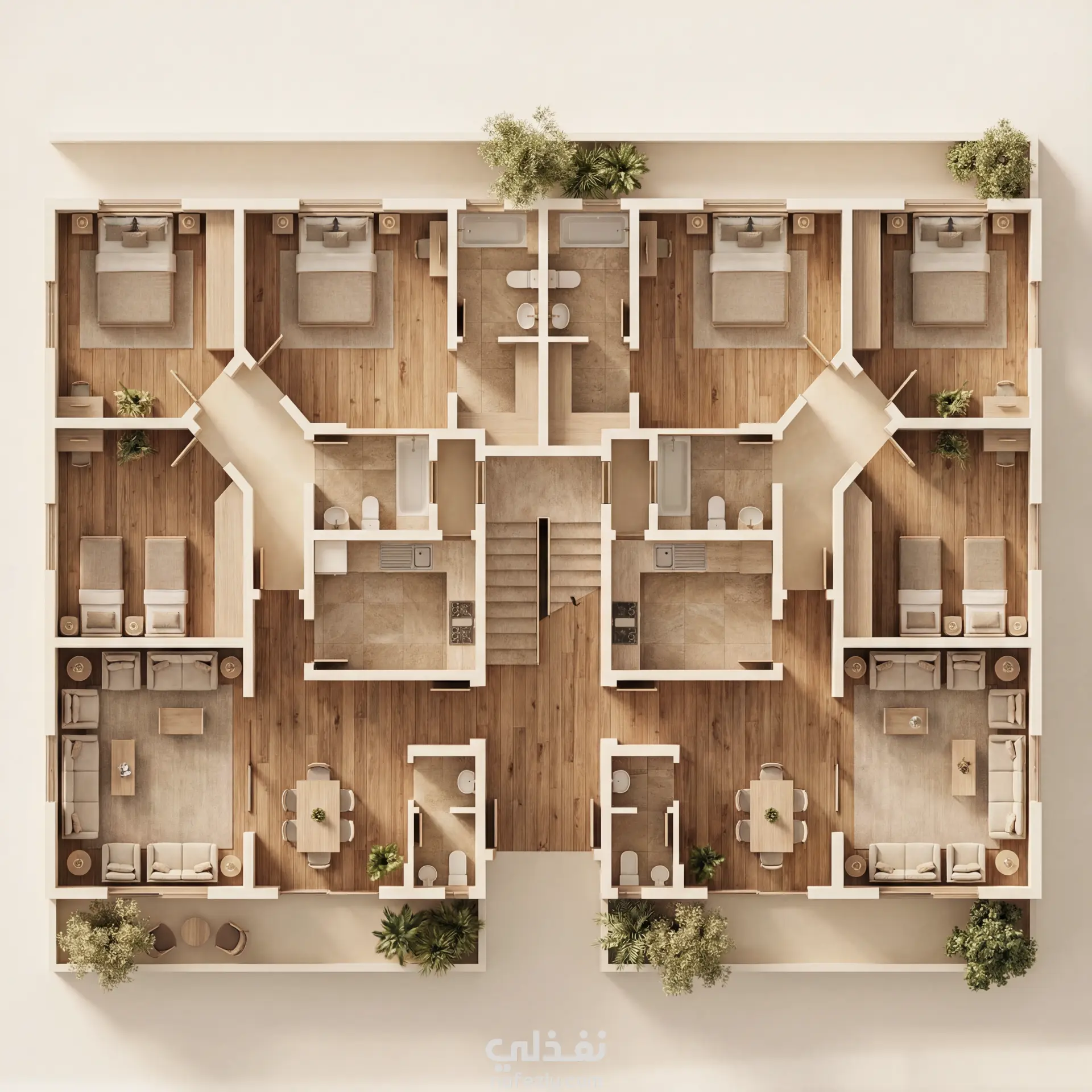 الفرش الداخلي ثلاثي الأبعاد بهدف توضيح طريقة توزيع الأثاث داخل كل فراغ بشكل واقعي واحترافي، اعتمادًا على المخطط المعماري المعتمد دون أي تغيير في المساحات أو الجدران. 🔹 يتم تحويل المسقط الأفقي (2D) إلى تصور ثلاثي الأبعاد واضح يبيّن: أماكن الأثاث المقترحة داخل كل غرفة علاقات الحركة بين الفراغات استغلال المساحات بشكل عملي ومريح النسب الصحيحة للأثاث مقارنة بحجم الفراغ 🔹 الخدمة مناسبة لـ: الشقق السكنية الفيلات الوحدات الفندقية المكاتب الإدارية 🔹 مميزات الخدمة: توزيع أثاث واقعي قابل للتنفيذ اختيار مقاسات مناسبة لكل قطعة توضيح الاستخدام الأمثل لكل فراغ مساعدة العميل على تخيّل الشكل النهائي قبل التنفيذ تقليل الأخطاء أثناء التنفيذ الفعلي 🔹 المخرجات: منظور علوي ثلاثي الأبعاد (3D Floor Plan) توزيع أثاث واضح لكل غرفة صورة احترافية مناسبة للعرض أو العرض على العميل 📌 ملحوظة: الخدمة تركّز على طريقة التوزيع والفرش وليس التصميم الإنشائي، وتُعد خطوة أساسية قبل البدء في التشطيب أو شراء الأثاث.