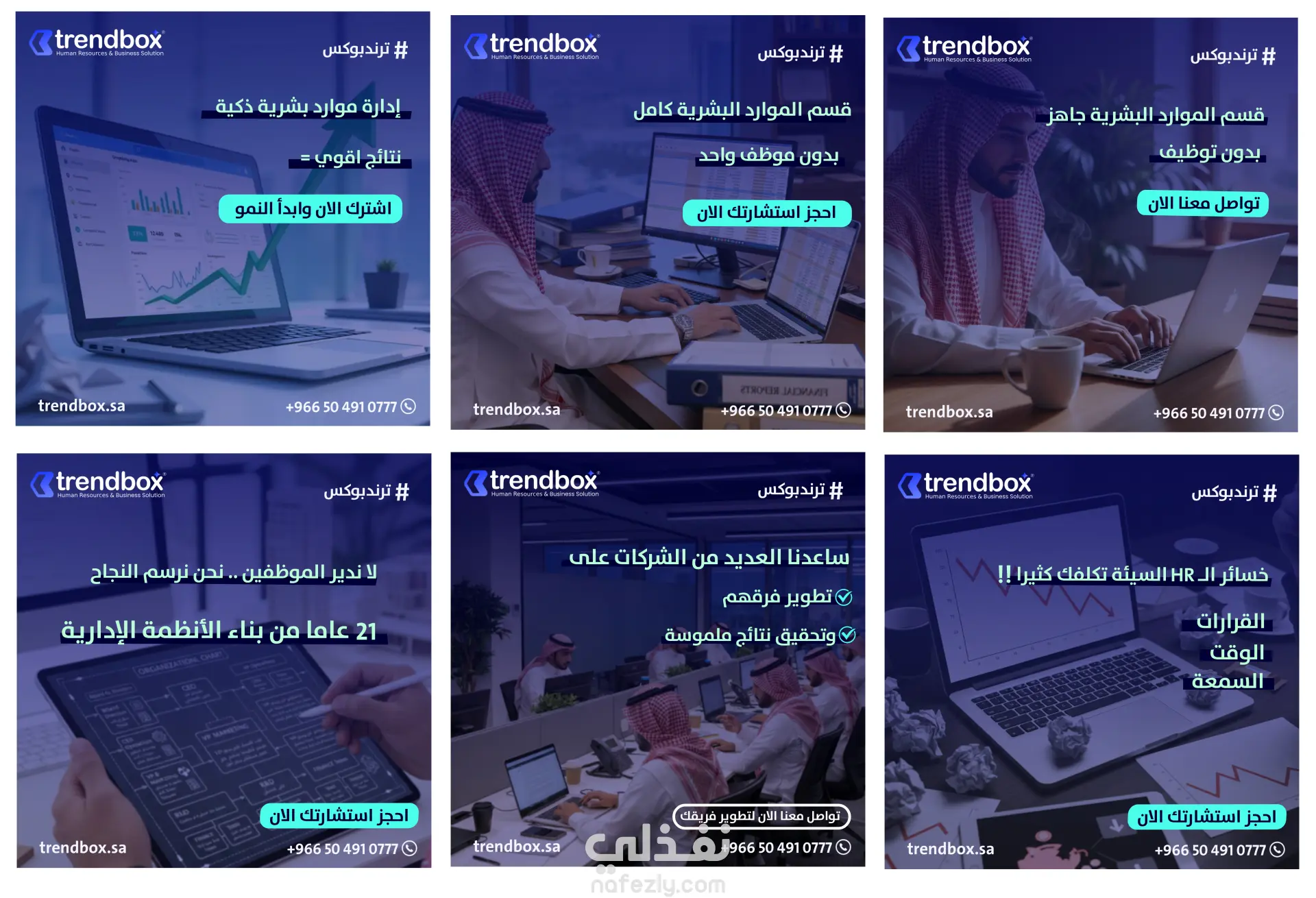 قمت بتصميم بوستات انستجرام لشركه Trendbox باستخدام برامج التصميم بدقة ومهارة. مراعيه الوان الهويه البصريه للشركه.
