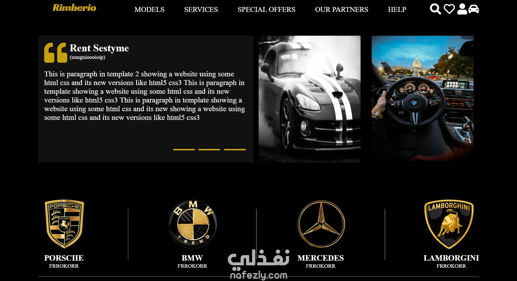 rent cars مشروع UI وتم تنفيذه بHTML5,CSS3 هذا المشروع عبارة عن تصميم وتنفيذ موقع لتأجير السيارات الفارهة يهدف إلى تقديم تجربة مستخدم سهلة وواضحة تفاصيل المشروع: قمت بتصميم low fatality ثم انتقلت مباشرة إلى التصميم HTML ,CSS تصميم بعض صور السيارات باستخدام الذكاء الصناعي تصميم متجاوب مع احجام الشاشات المختلفة التركيز على بعض الAnimation البسيط لجذب انتباه العملاء يمكنك الاطلاع على المشروع كامل ومشروعات اخرى من خلال لينك المشروع في الأسفل