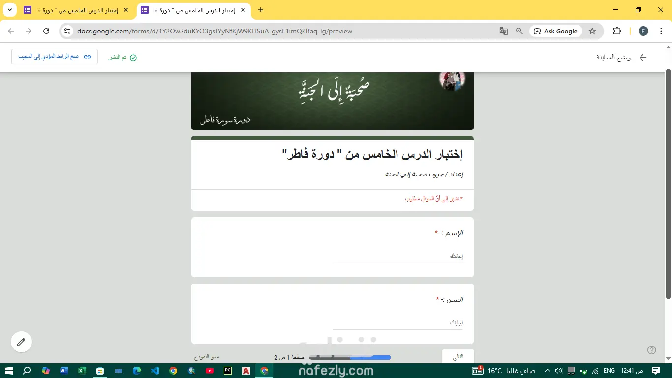 هل تحتاج إلى نموذج Google Form لجمع البيانات أو تنظيم الحجوزات أو غيرها؟ أقدّم لك خدمة تصميم نموذج احترافي، منسق، وسهل الاستخدام يشمل: - إدخال الأسئلة المطلوبة - تنسيق النموذج بألوانك وهويتك - إعدادات الردود وربطها بشيت - إمكانية إضافة شعار أو صورة - تصميم فورم للحجز، الاستبيانات، التسجيل، الطلبات وغيرها سأضمن لك: - سرعة في التنفيذ - إمكانية التعديل حسب طلبك - تصميم ملف Excel من الردود وتنسيقه.