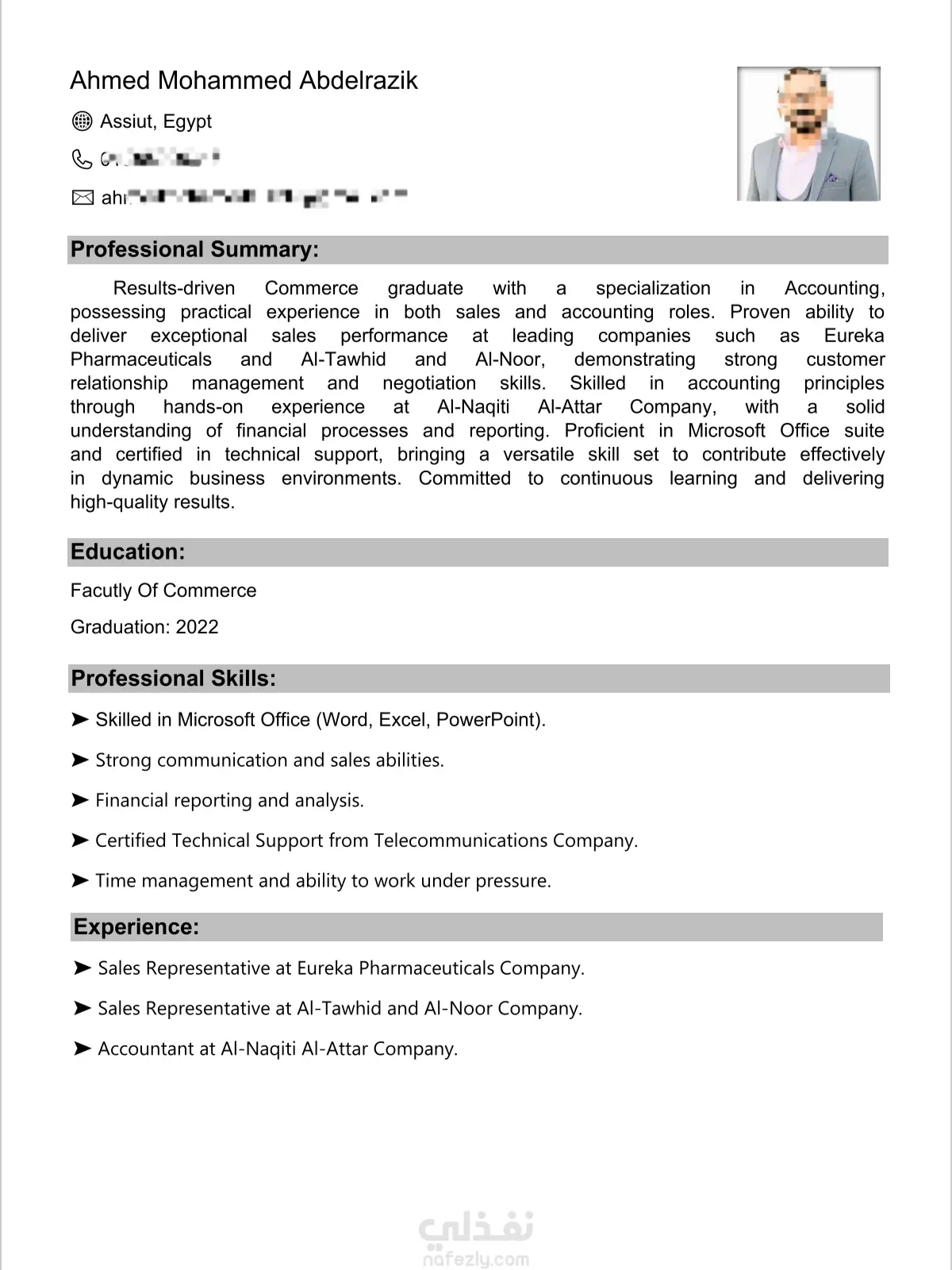 أقدم لكِ خدمة تصميم وكتابة CV مميز ومنسق باحتراف، باللغة العربية أو الإنجليزية، حسب طلبك. - تنسيق أنيق وجذاب للسيرة الذاتية. - كتابة أو إعادة صياغة المحتوى بشكل احترافي وواضح. - تصميم بألوان وخطوط مناسبة لمجال العمل. - تسليم الملف بصيغ PDF وWord. - تعديل مجاني بعد التسليم (مرة واحدة).