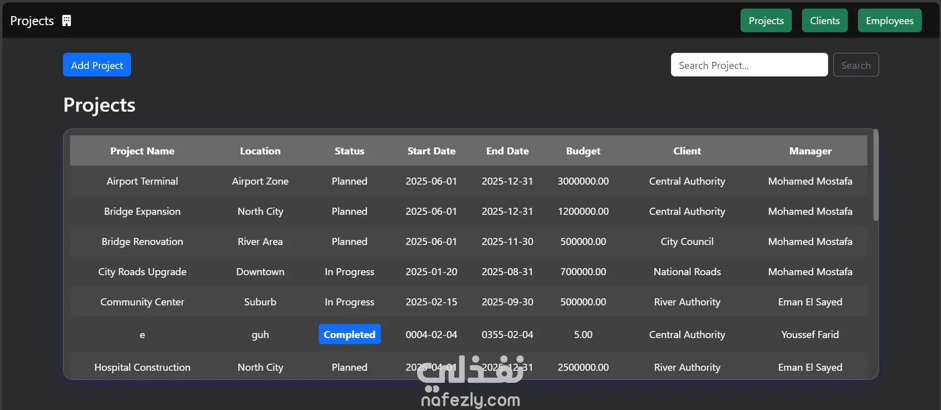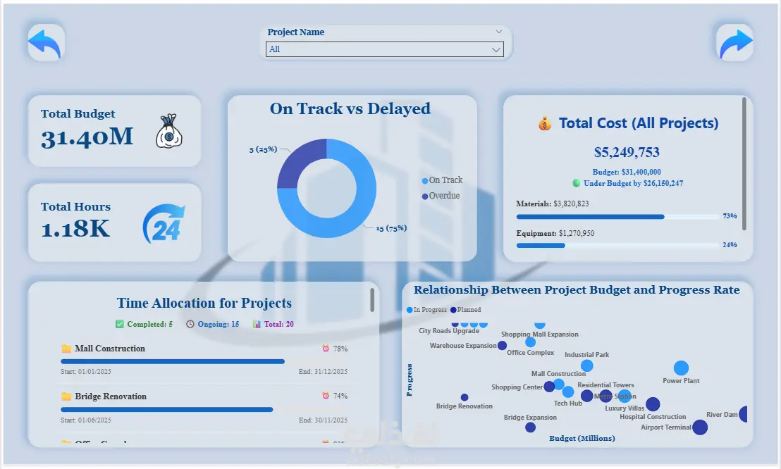 نظام متكامل للشركات لتحليل بيانات المشاريع والموظفين واتخاذ قرارات ذكية. يجمع بين تطبيق ويب متجاوب، لوحات تحكم تفاعلية في Power BI، وقاعدة بيانات موثوقة لتقديم رؤية كاملة لأداء المشاريع، الإنتاجية، والتكاليف.