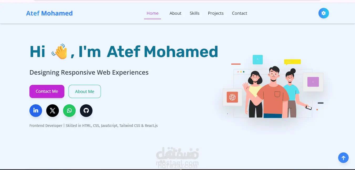تم تصميم وتطوير موقع بورتفوليو شخصي احترافي ثنائي اللغة (العربية والإنجليزية) باستخدام أحدث تقنيات الويب. الموقع يتميز بتصميم عصري، سريع الاستجابة (Responsive) ومتوافق مع جميع الأجهزة (موبايل – تابلت – كمبيوتر). كما يحتوي على العديد من الخصائص التفاعلية والأنيميشن لجذب المستخدمين وتحسين تجربة التصفح. التقنيات المستخدمة: HTML5, CSS3, JavaScript كأساس للمشروع. Tailwind CSS لتصميم واجهة حديثة وسريعة الاستجابة. AOS.js لإضافة تأثيرات حركية عند التمرير. Typed.js لتأثير الكتابة الديناميكي. Lottie لعرض أنيميشن عالية الجودة. أبرز المميزات: تصميم ثنائي اللغة (عربي/إنجليزي) مع إمكانية التبديل بسهولة. دعم الوضع الليلي والنهاري مع حفظ تفضيلات المستخدم. تصميم متجاوب بالكامل لجميع الأجهزة. قائمة تنقل ذكية تختفي وتظهر حسب التمرير. أنيميشن تفاعلية باستخدام AOS وLottie. قائمة جانبية للموبايل مع إغلاق تلقائي عند اختيار الرابط. زر العودة للأعلى مع حركة سلسة. نموذج تواصل (Contact Form) مع تحقق من صحة البيانات وعرض رسالة نجاح أنيقة.