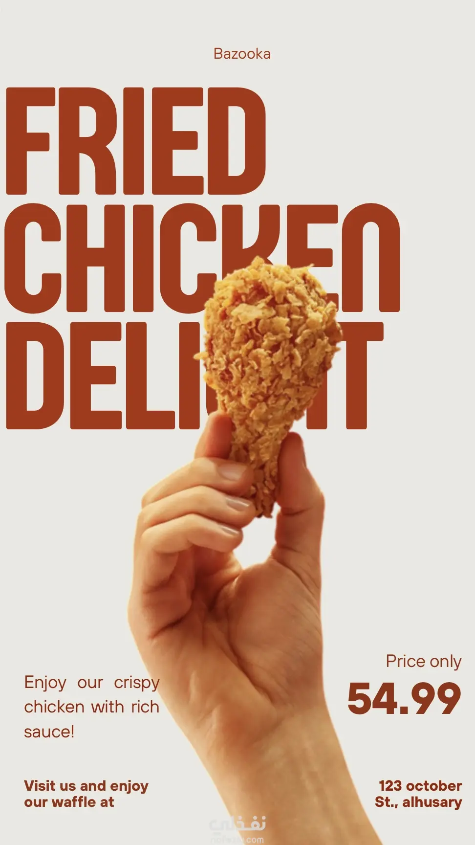 إعلان لمطعم دجاج، ألوان قوية،تصميم جذاب