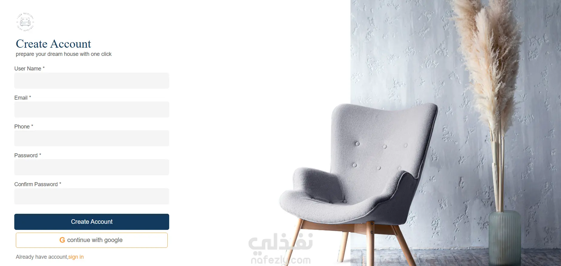 موقع تصفح و شراء قطع الاثاث-Landing Page