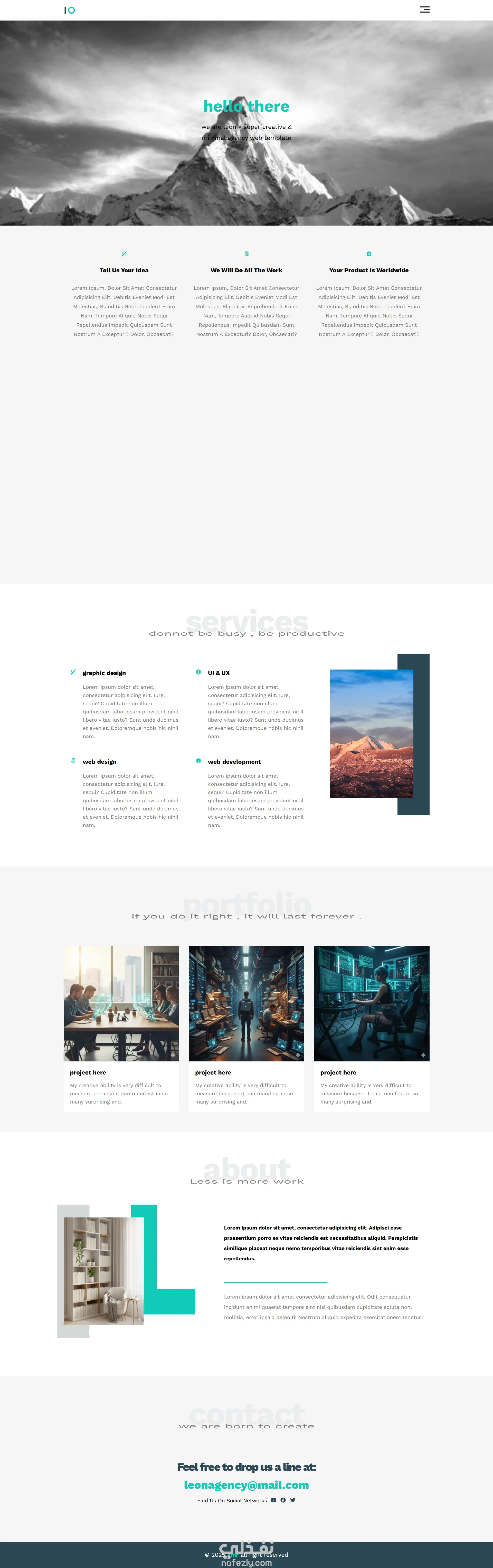 تصميم وتطوير Landing Page احترافية باستخدام HTML5 و CSS3 بتصميم عصري وبسيط (Modern & Clean Design)، مناسبة للشركات الناشئة، الوكالات الإبداعية، أو أي نشاط تجاري يحتاج واجهة جذابة وسلسة. الموقع متقسم بشكل منظم وواضح، ويشمل: - Hero Section بخلفية جذابة ورسالة ترحيبية - قسم Services لعرض الخدمات بطريقة احترافية - قسم Portfolio لعرض الأعمال السابقة - قسم About للتعريف بالشركة أو الشخص - قسم Contact للتواصل وعرض الإيميل ووسائل التواصل - تصميم متناسق وألوان هادئة - Responsive Design يعمل على جميع الشاشات (Desktop – Tablet – Mobile) - كود نظيف ومنظم وسهل التعديل عليه