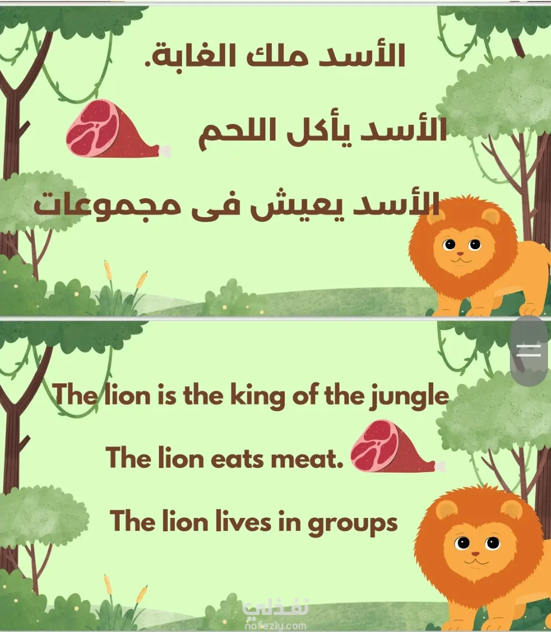 تصميم صور عن الحيوانات وبيئاتهاةوأكلها المفضل لمدرسة رياض أطفال