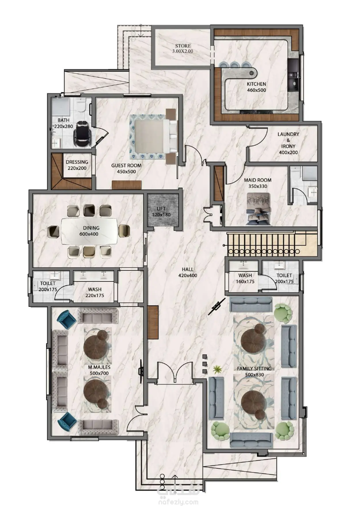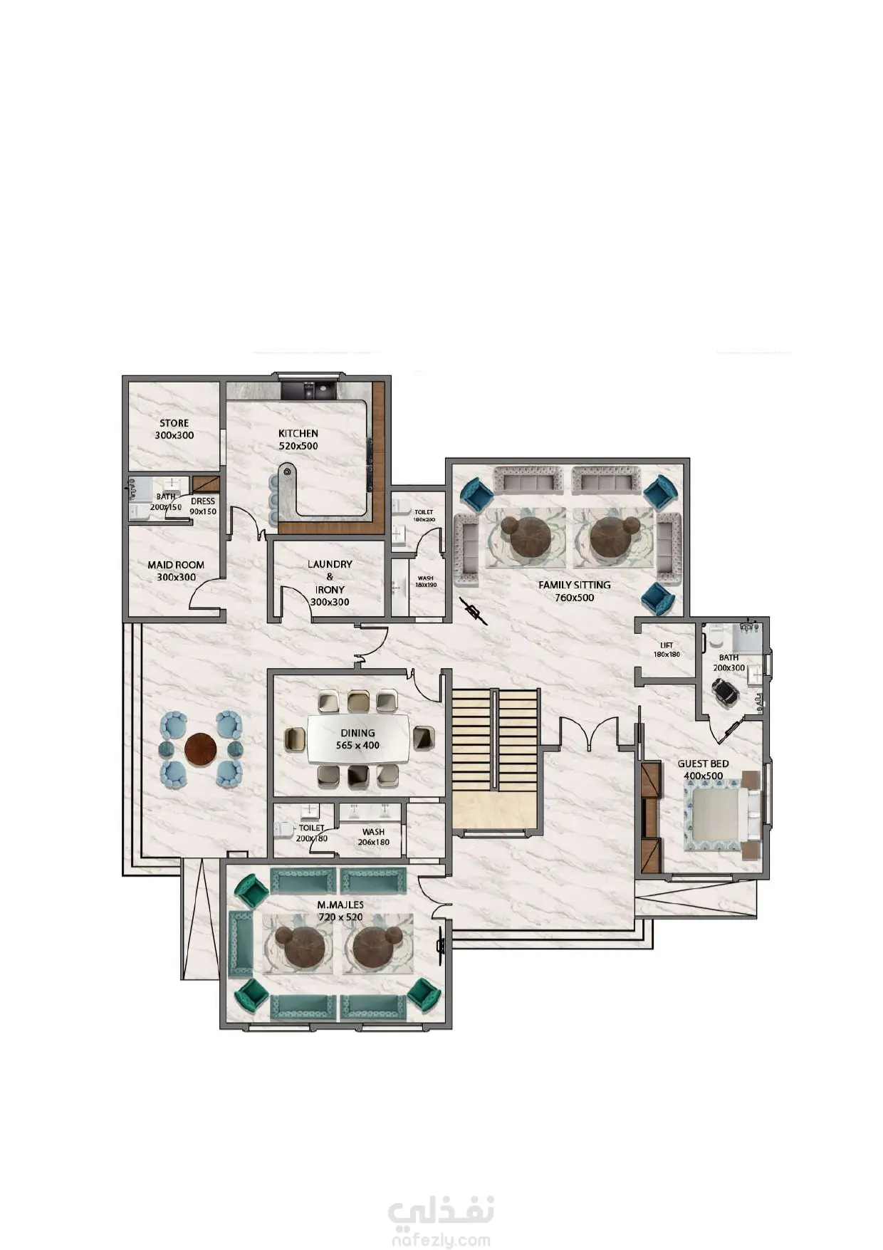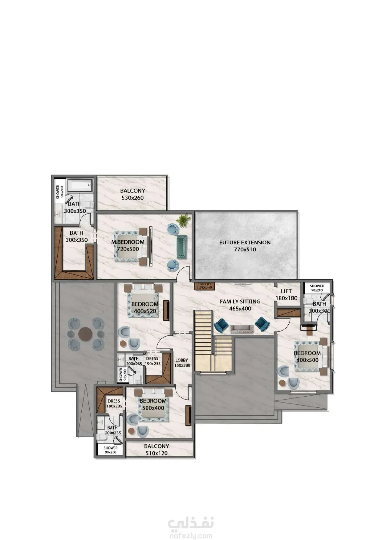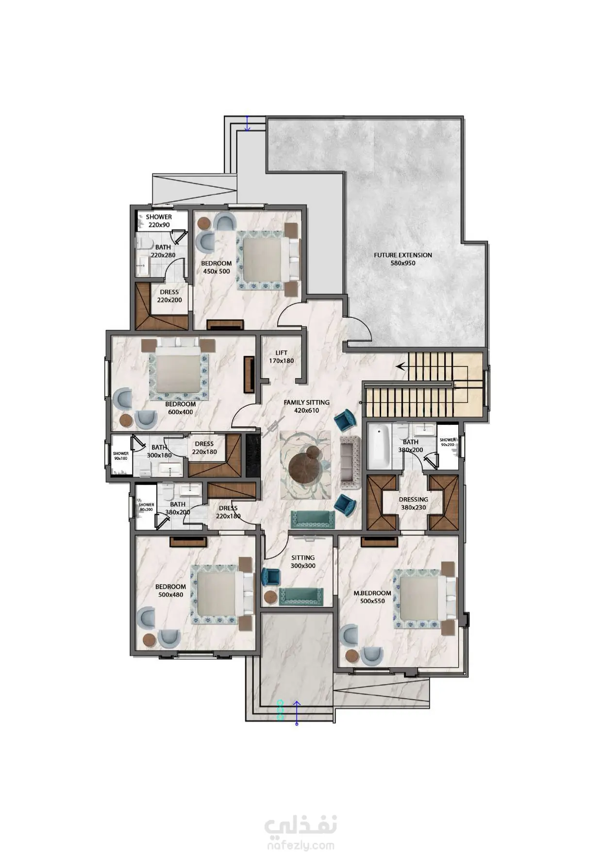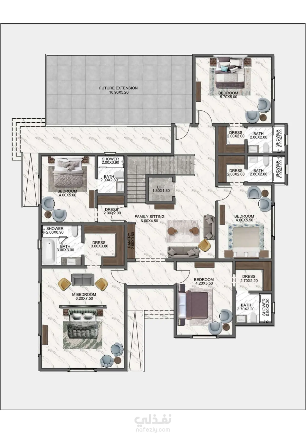 تصميم مخططات معمارية مع الفرش الكامل للفيلا