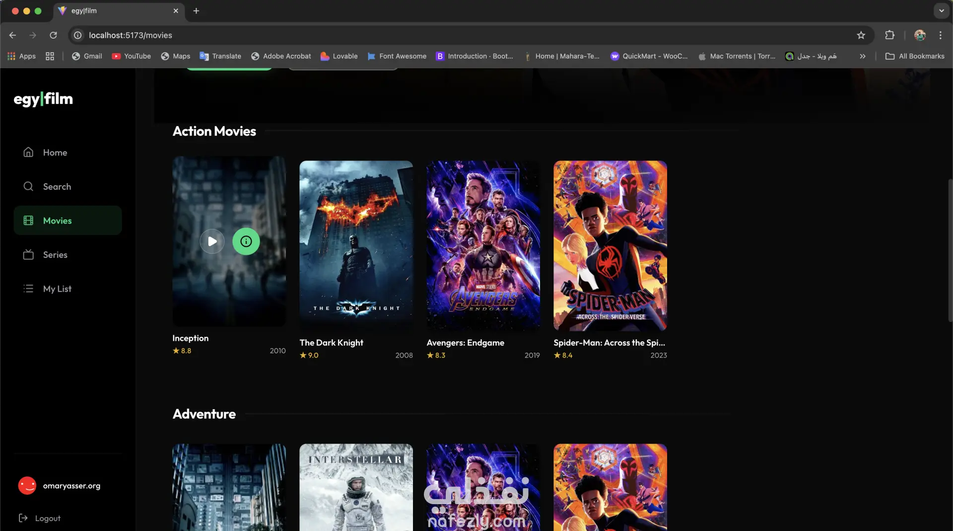 تصميم وتطوير منصة عرض أفلام ومسلسلات (Movie & Series Platform) باستخدام React