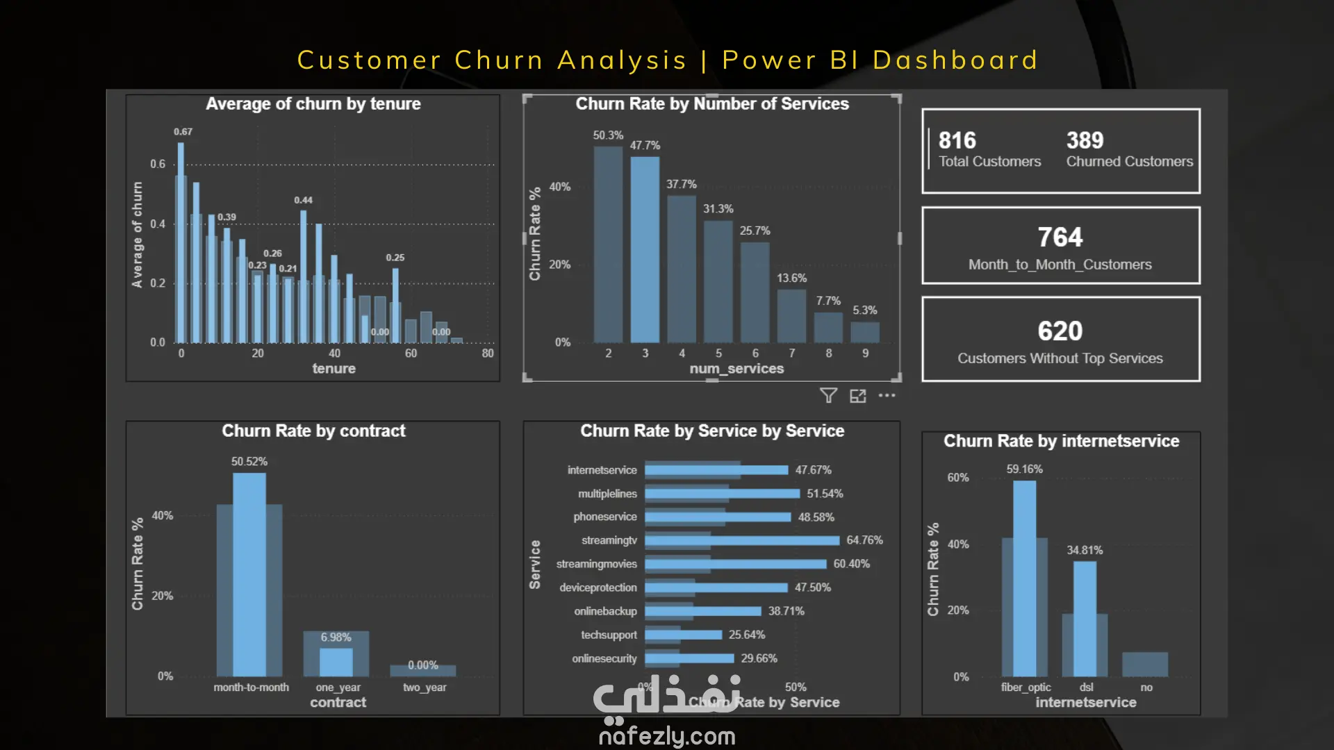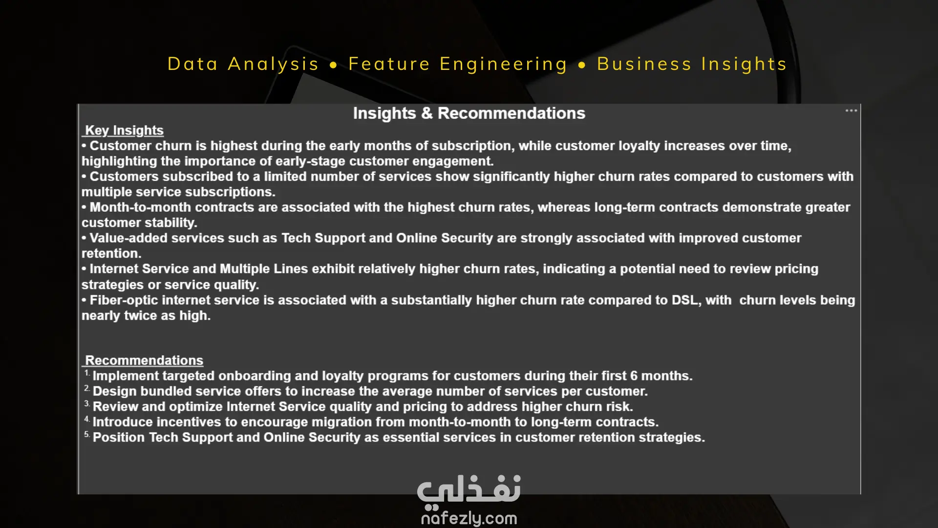 تم تقديم النتائج من خلال لوحة تحكم تفاعلية باستخدام Power BI تركز على دعم اتخاذ القرار وتحسين ولاء العملاء.